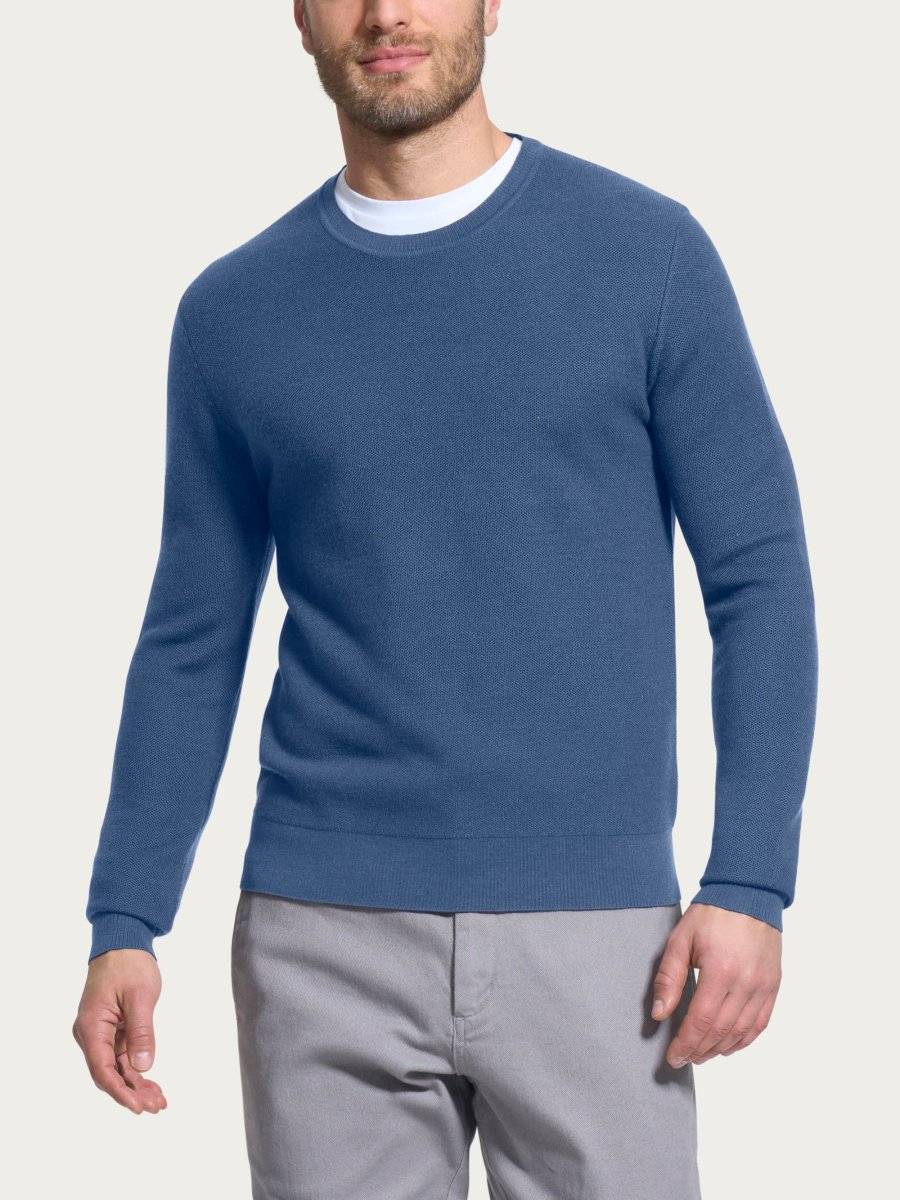 Maglia da uomo girocollo in pura lana, tessuto in finezza 12, estremamente morbido e caldo.