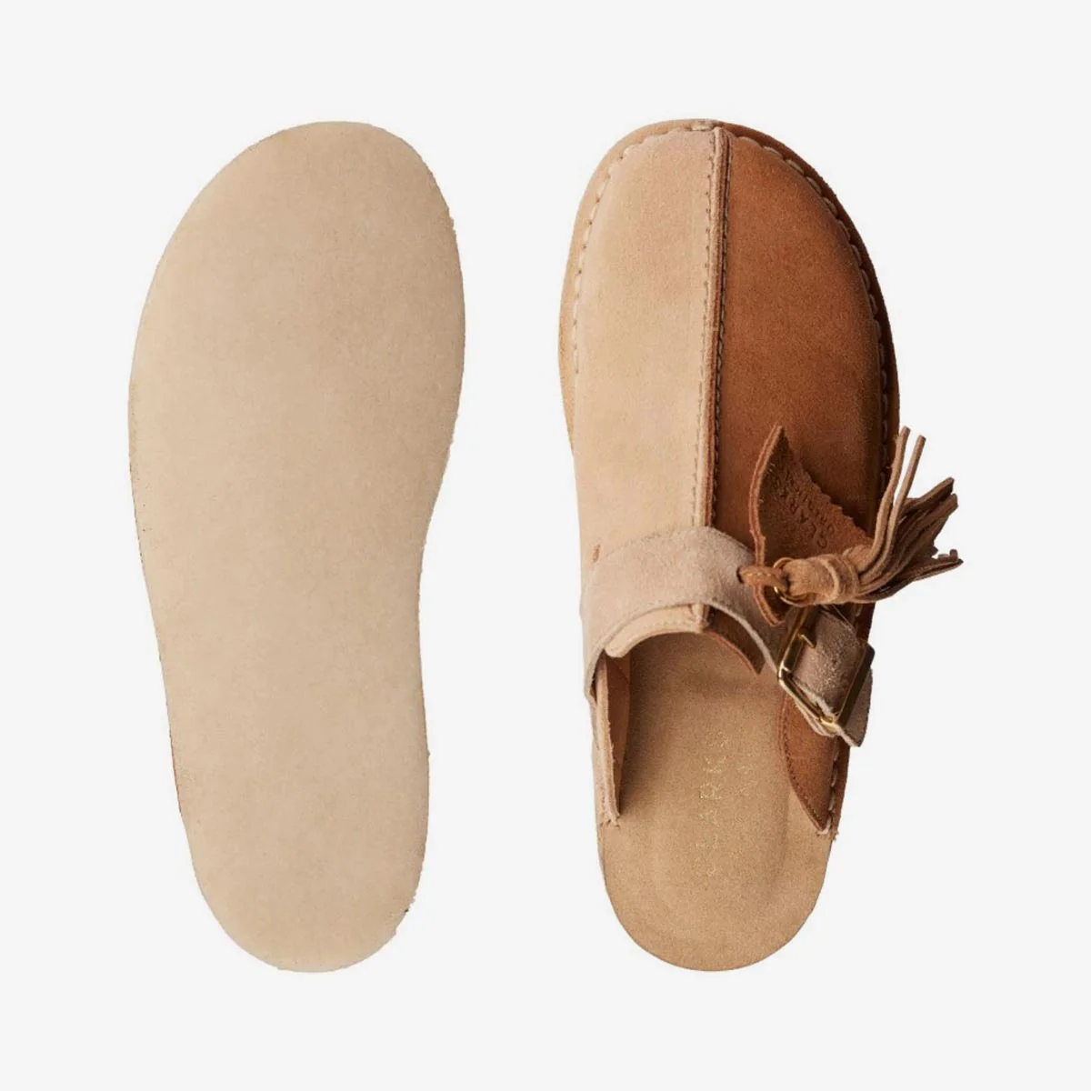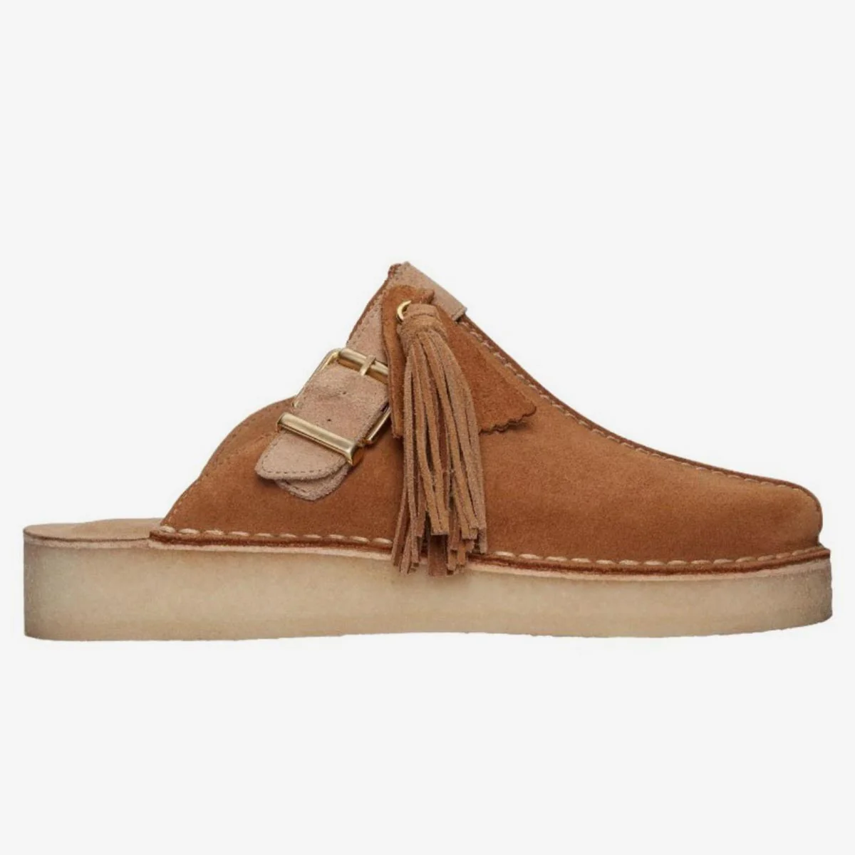 in pelle scamosciata senza tempo per completare innumerevoli look casual. Accentuato da un dettaglio con fibbia lucida, una nappina di tendenza e un distintivo logo sul portachiavi, questo modello senza schienale si trova su un’esclusiva suola in gomma crespa naturale per assorbire l’impatto di ogni passo.