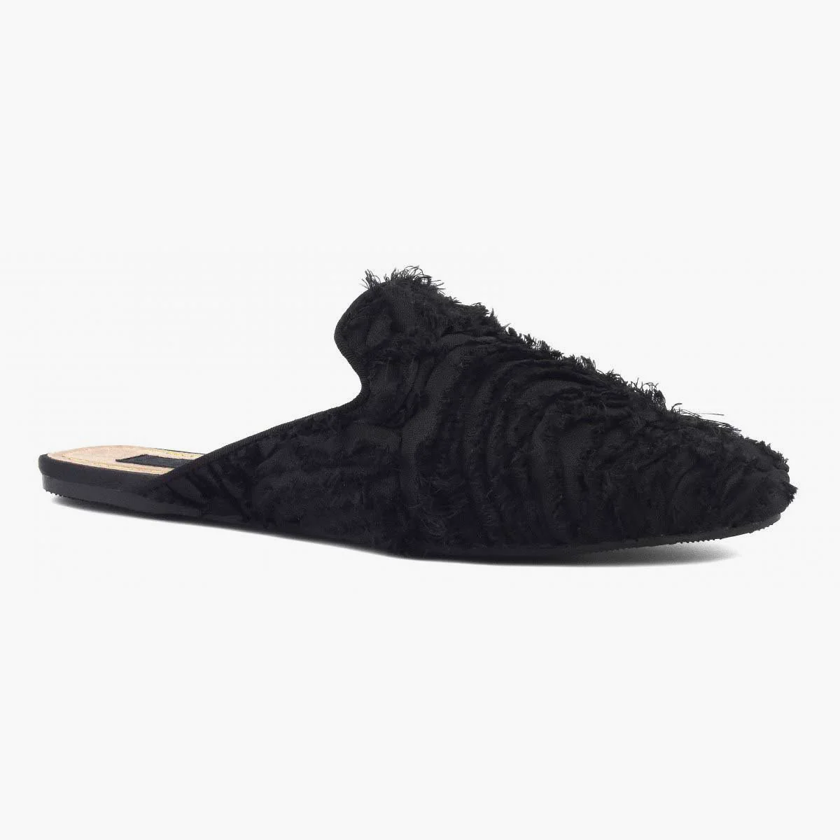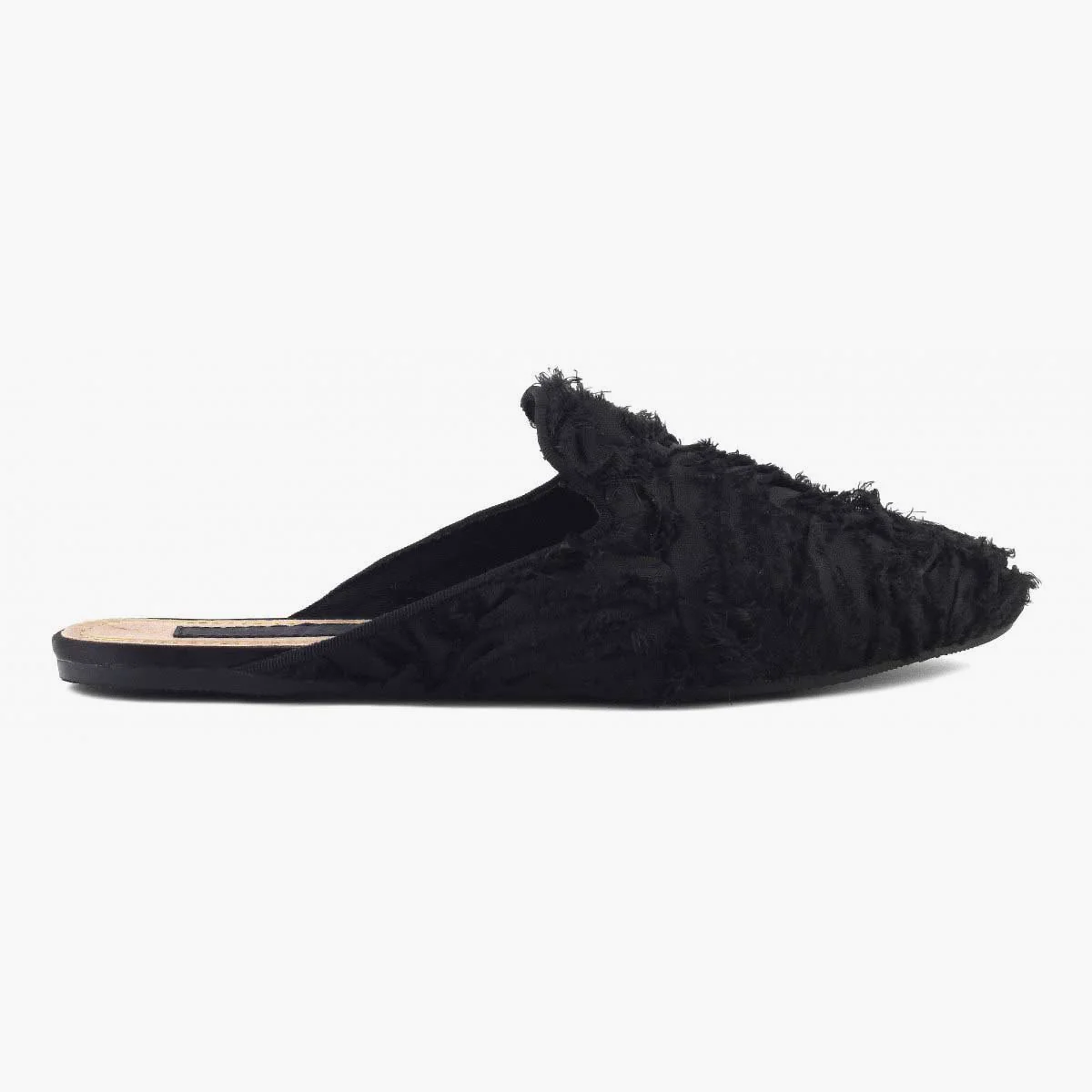 Sabot in tessuto in tulle, applicazioni a contrasto, tinta unita, punta stretta, interno in tessuto, suola in gomma.