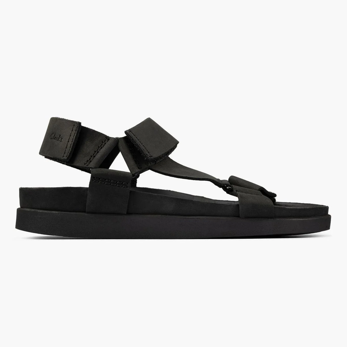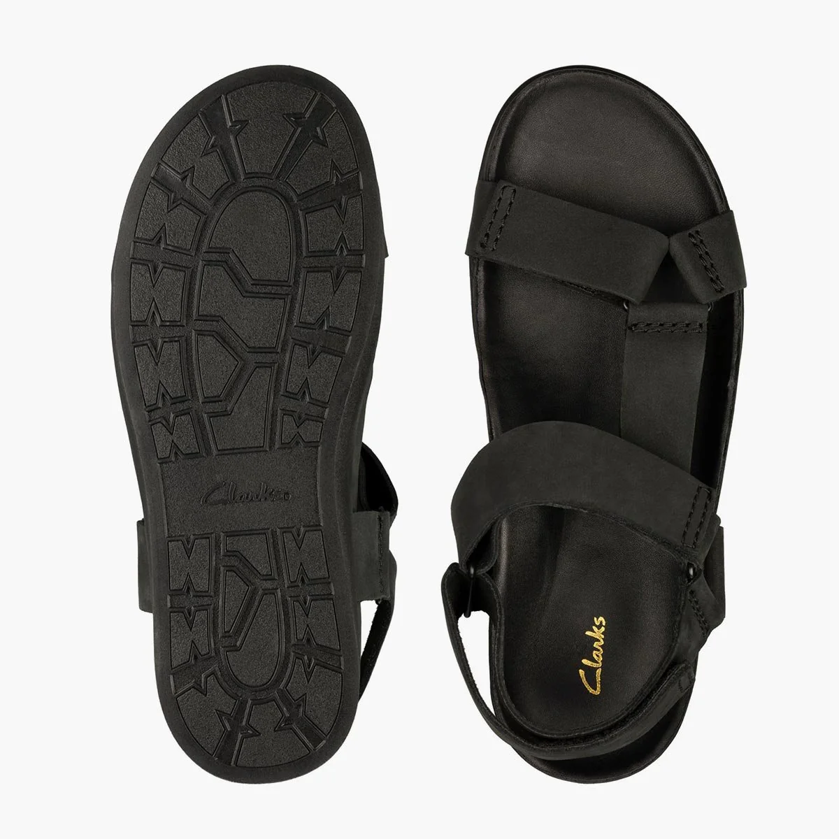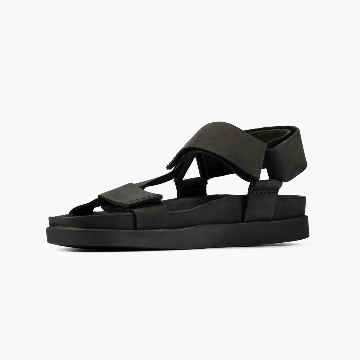 Sandalo Sunder Range in morbido nabuk nero con imbottitura sotto i piedi e la soletta in pelle.