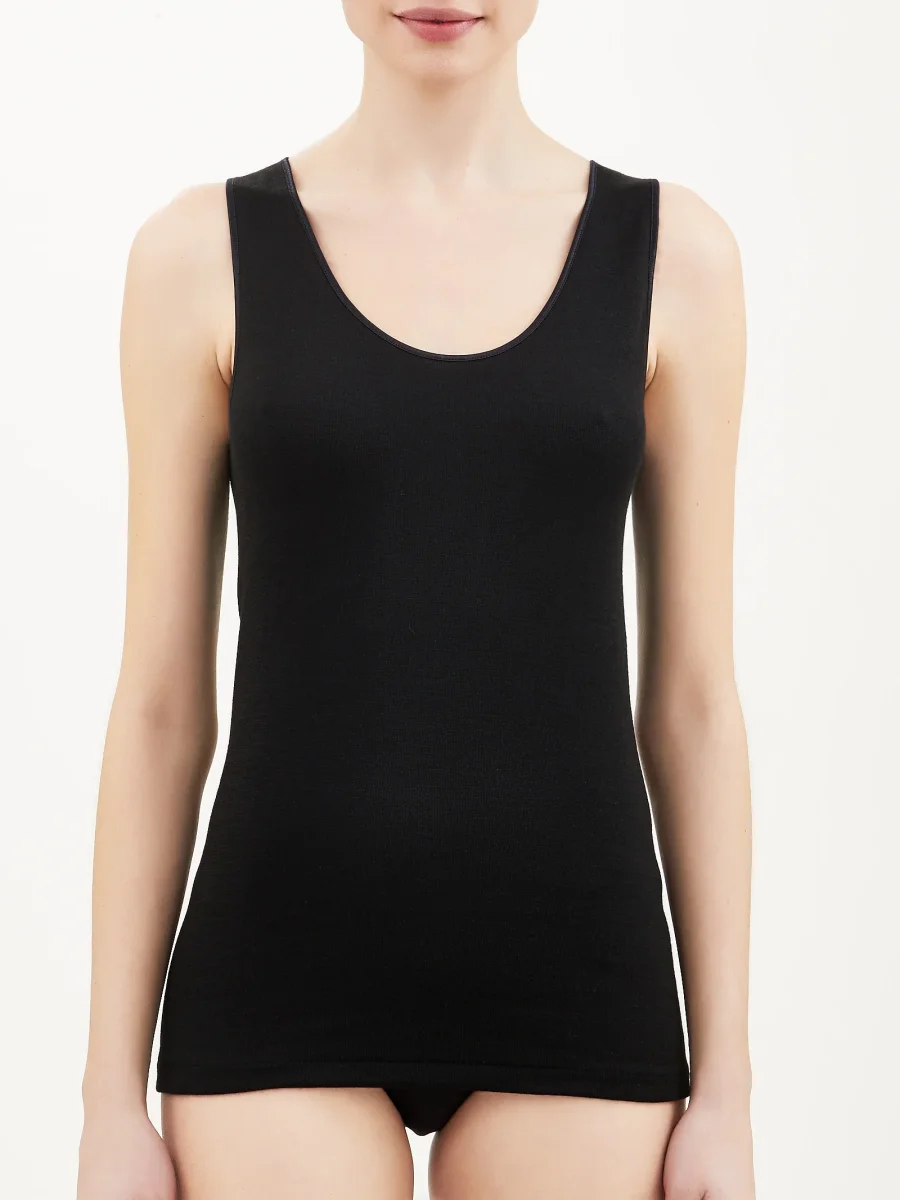 Canottiera a spalla larga in lana rinforzata fuori e cotone sulla pelle.