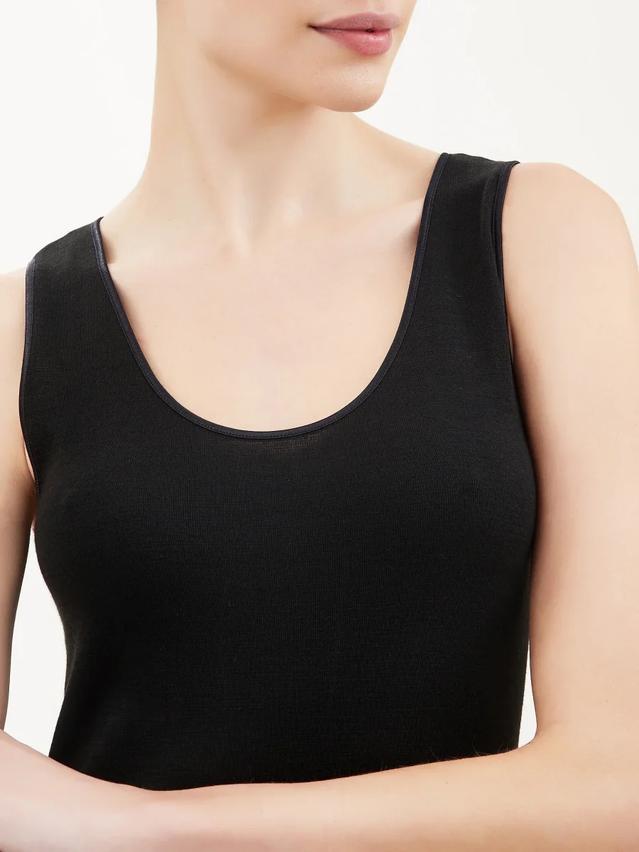 Sintonia – Canottiera spalla larga in tessuto doubleface – Nero