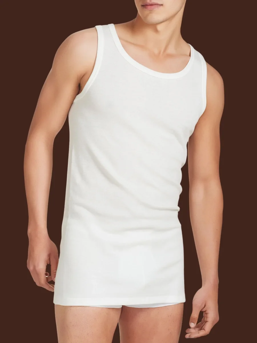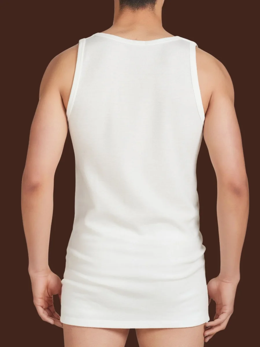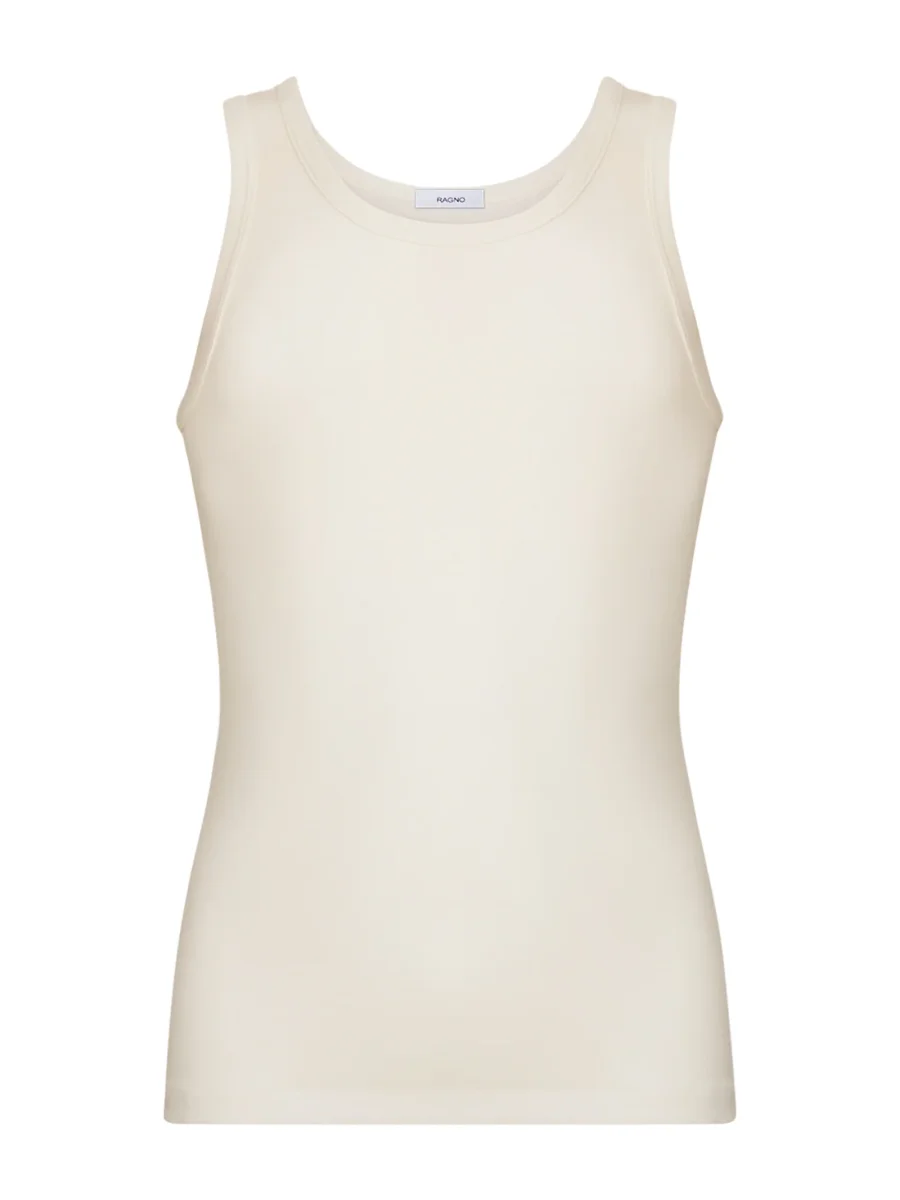 Canottiera a spalla larga in tessuto doubleface realizzato in pura lana merino fuori e cotone sulla pelle.