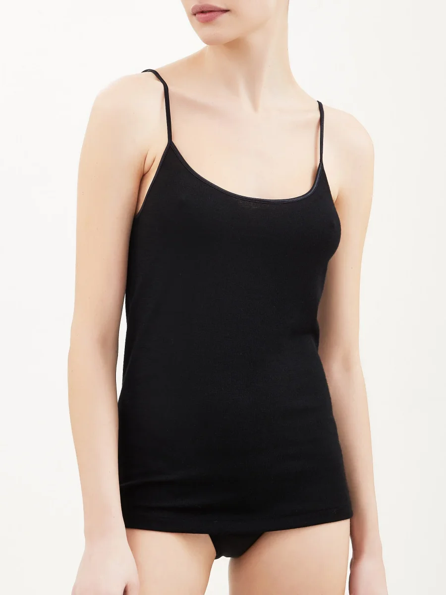 Top in lana rinforzata fuori e cotone sulla pelle.