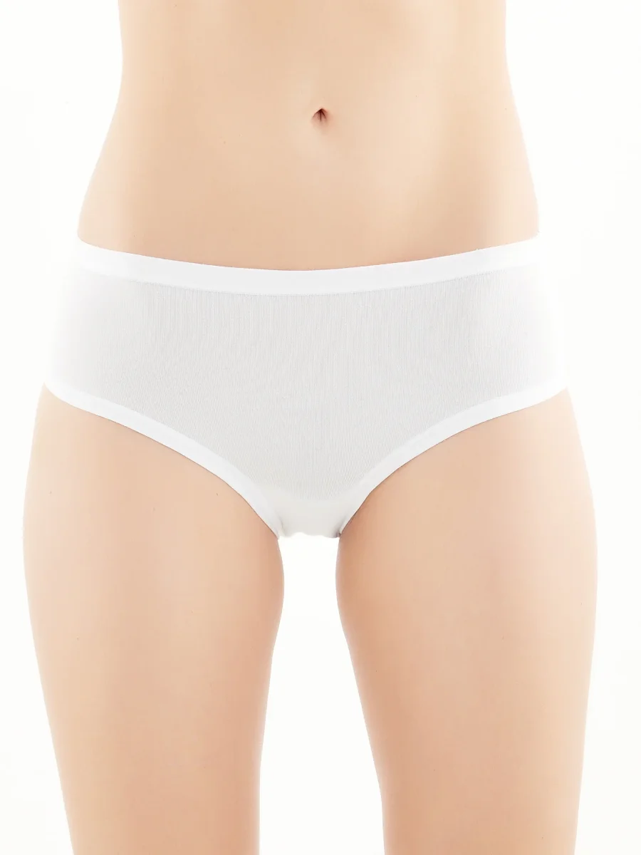 Slip midi avvolgente, invisibile in cotone e modal elasticizzato. Ulteriore comfort è garantito dall’assenza dell’elastico che viene sostituito da una bordatura realizzata nello stesso tessuto del capo, contenente però un elastomero di dimensioni maggiori per una tenuta perfetta.