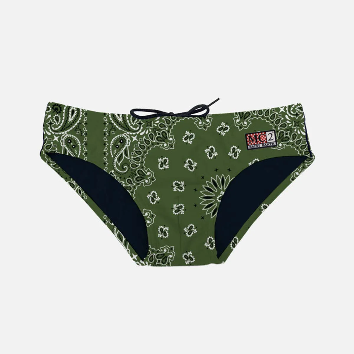 Uomo Slip mareStampa bandana verde militareVestibilità regolareElastico in vita e coulisse internaFodera interna