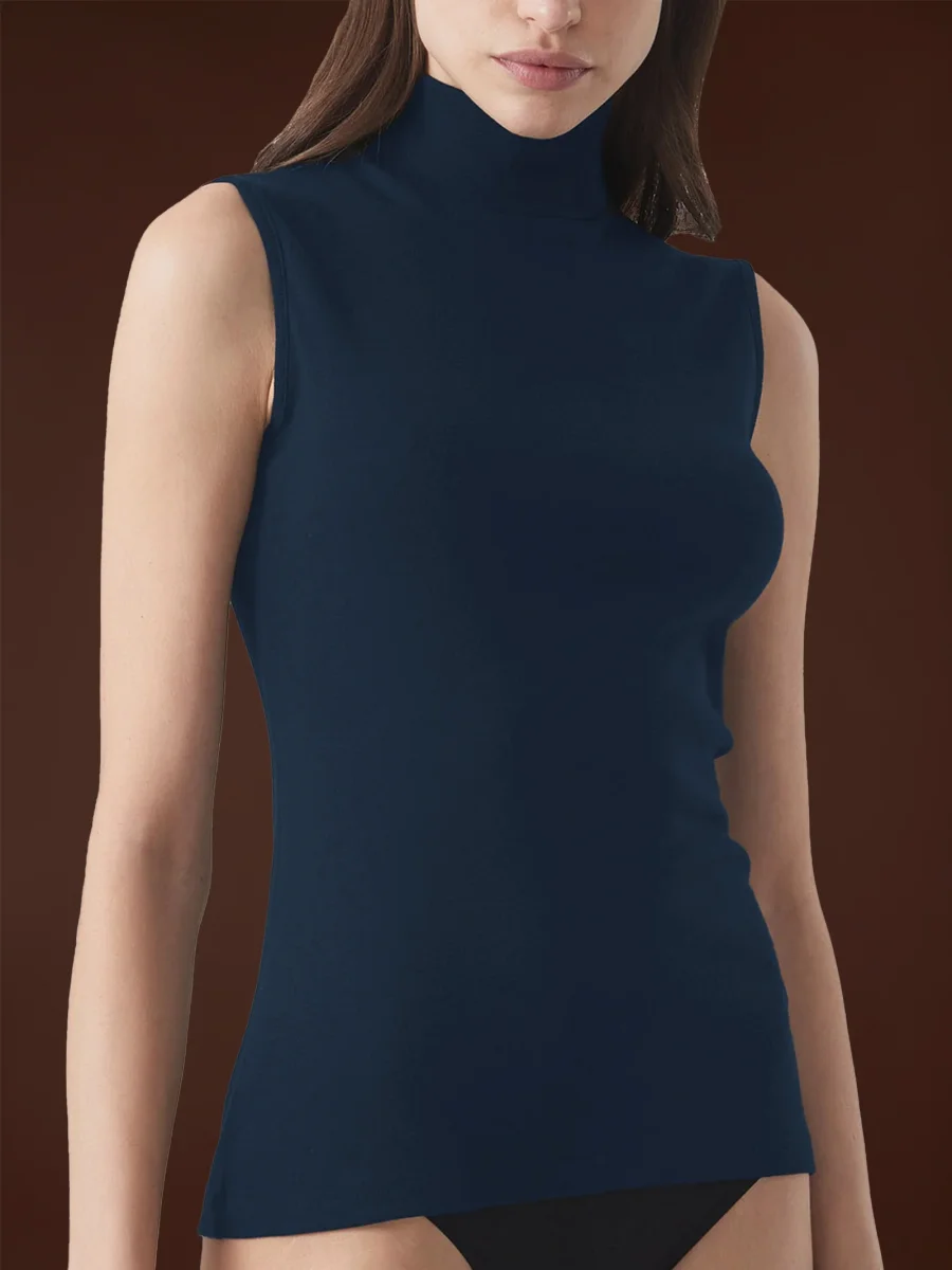 Smanicato a collo alto in Thermo Cotton – Bleu