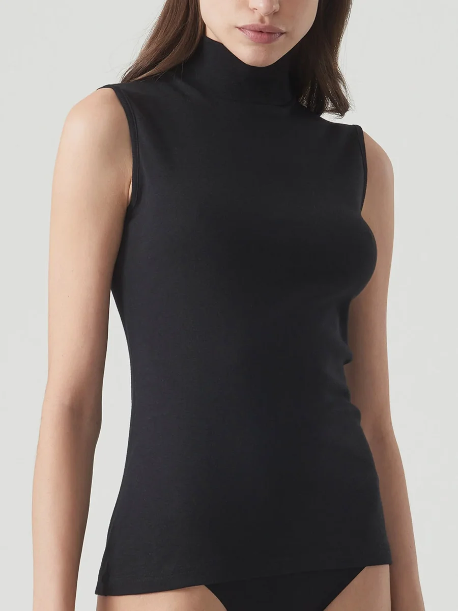 Smanicato da donna con collo alto a lupetto in soffice e caldo cotone Thermo Cotton.