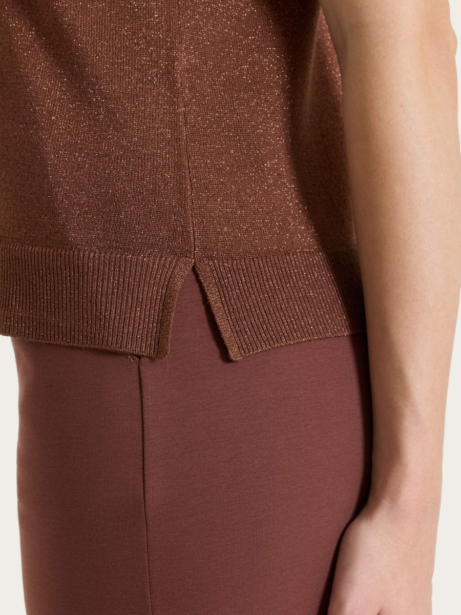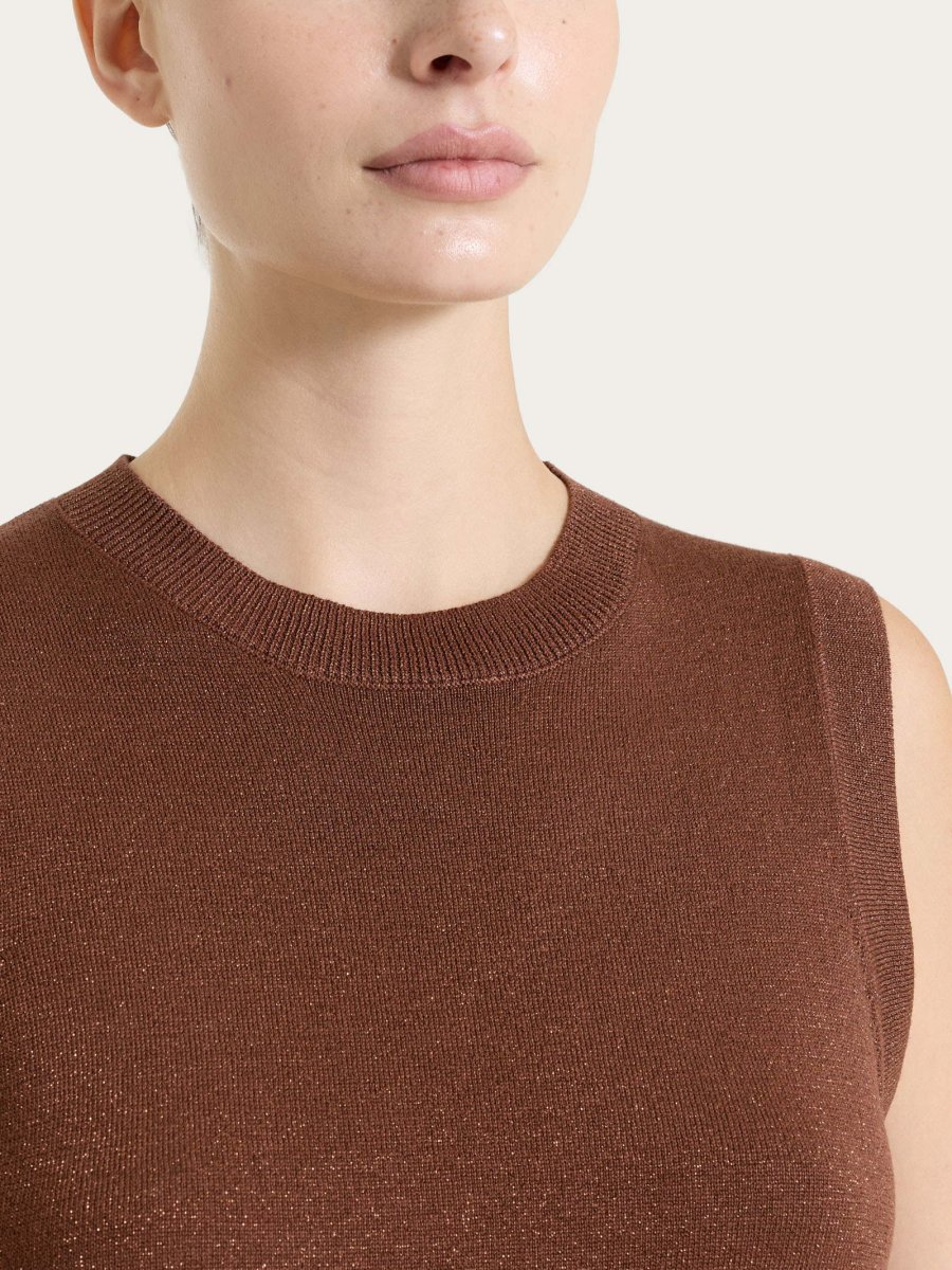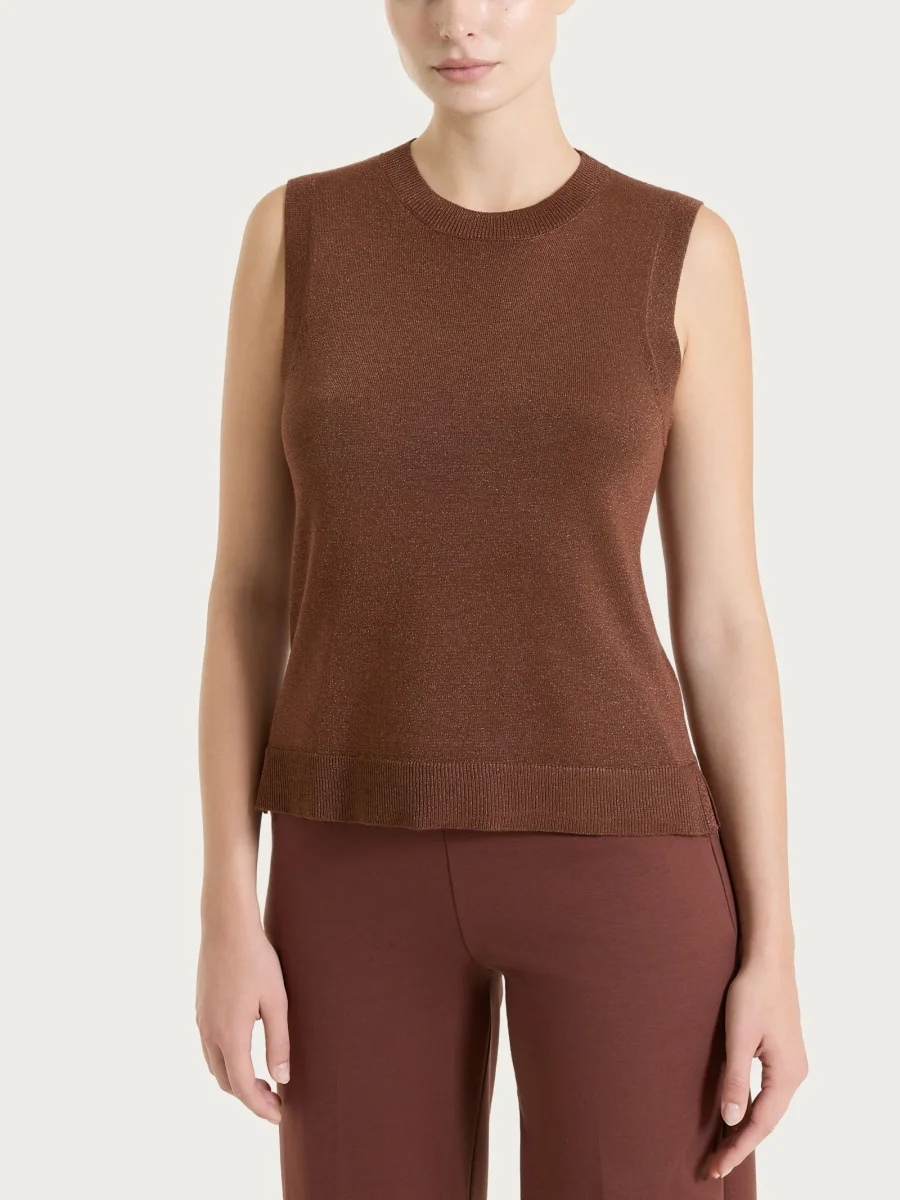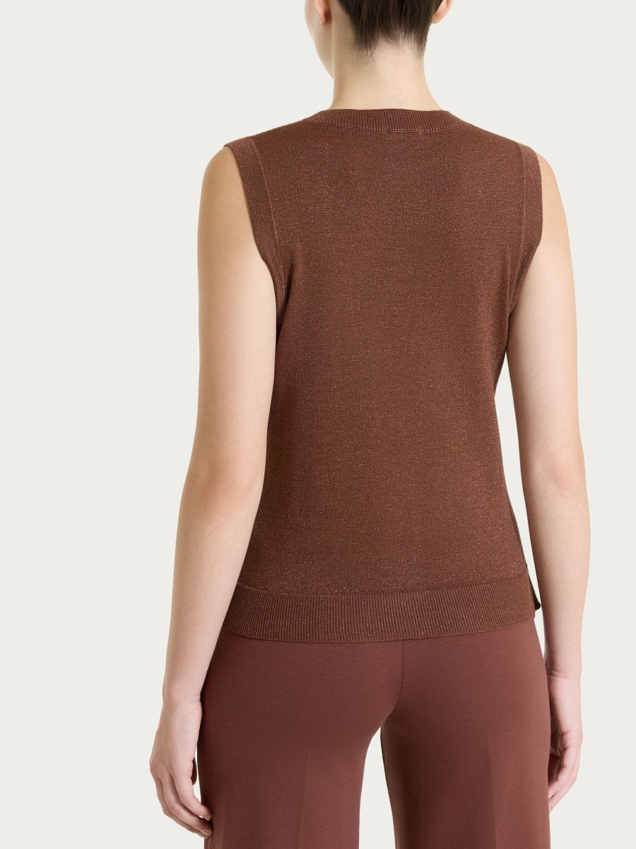 Gilet da donna smanicato in Lurex Summertime con girocollo, realizzato in maglia rasata di finezza 12.