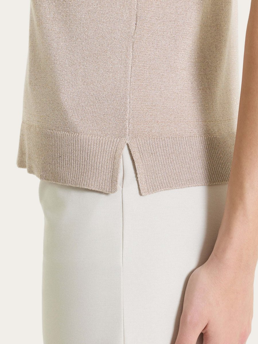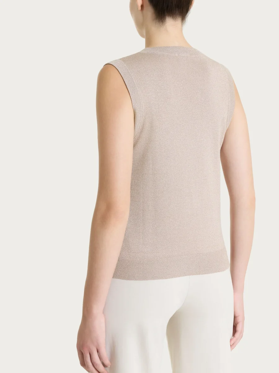 Gilet da donna smanicato in Lurex Summertime con girocollo, realizzato in maglia rasata di finezza 12.