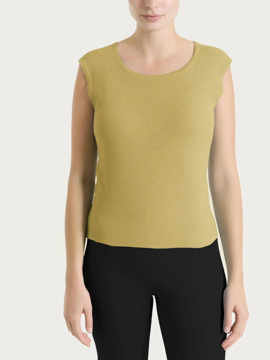 Gilet da donna smanicato con girocollo ampio.