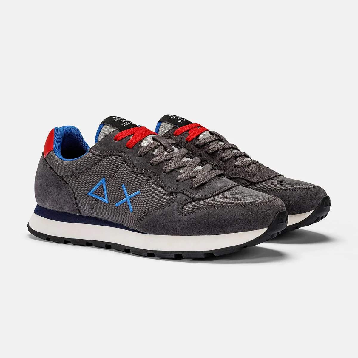 Sneakers basse traspiranti da uomo con lacci, realizzate in tessuto e camoscio con logo ricamato sul lato arancione fluo. I materiali della tomaia garantiscono morbidezza e resistenza. Doppi lacci inclusi. Soletta removibile.