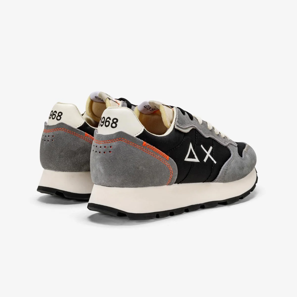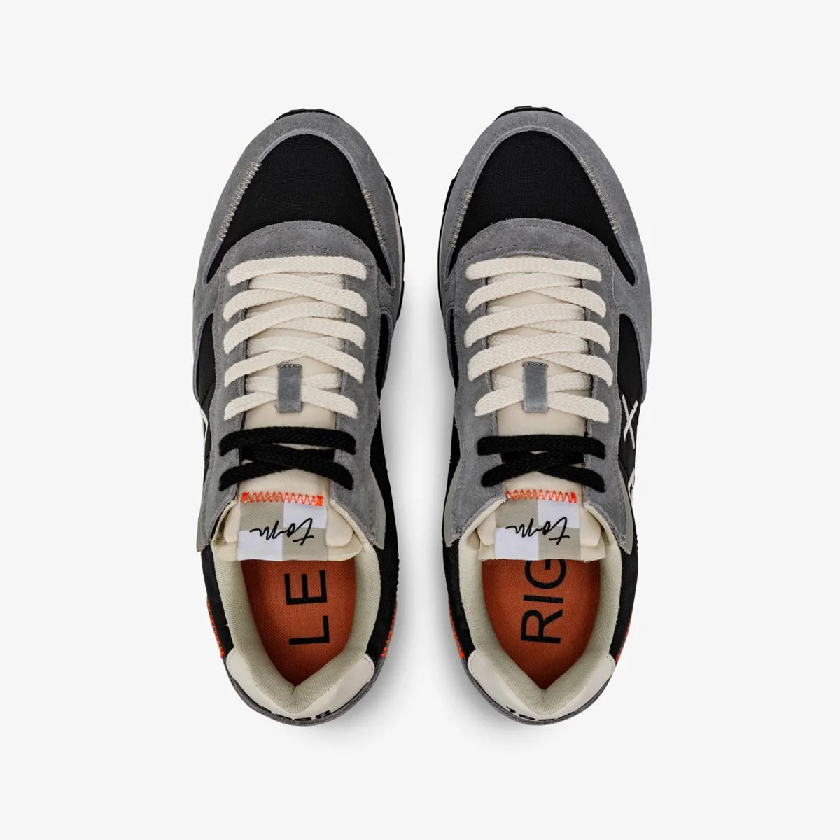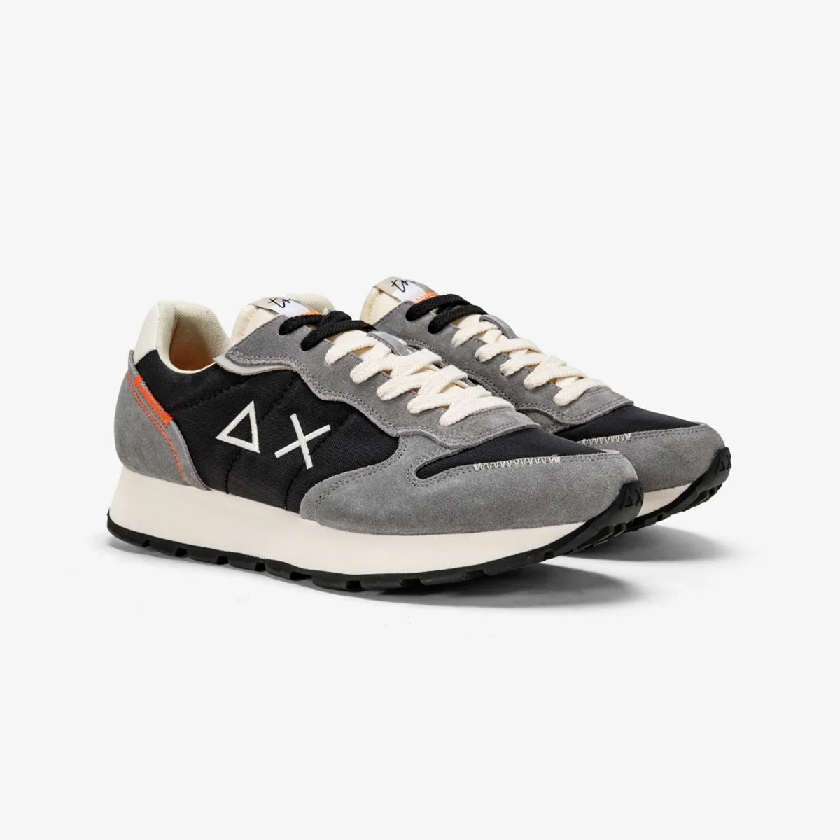 Sneakers basse traspiranti da uomo con lacci, realizzate in tessuto e camoscio con logo ricamato sul lato arancione fluo. I materiali della tomaia garantiscono morbidezza e resistenza. Doppi lacci inclusi.