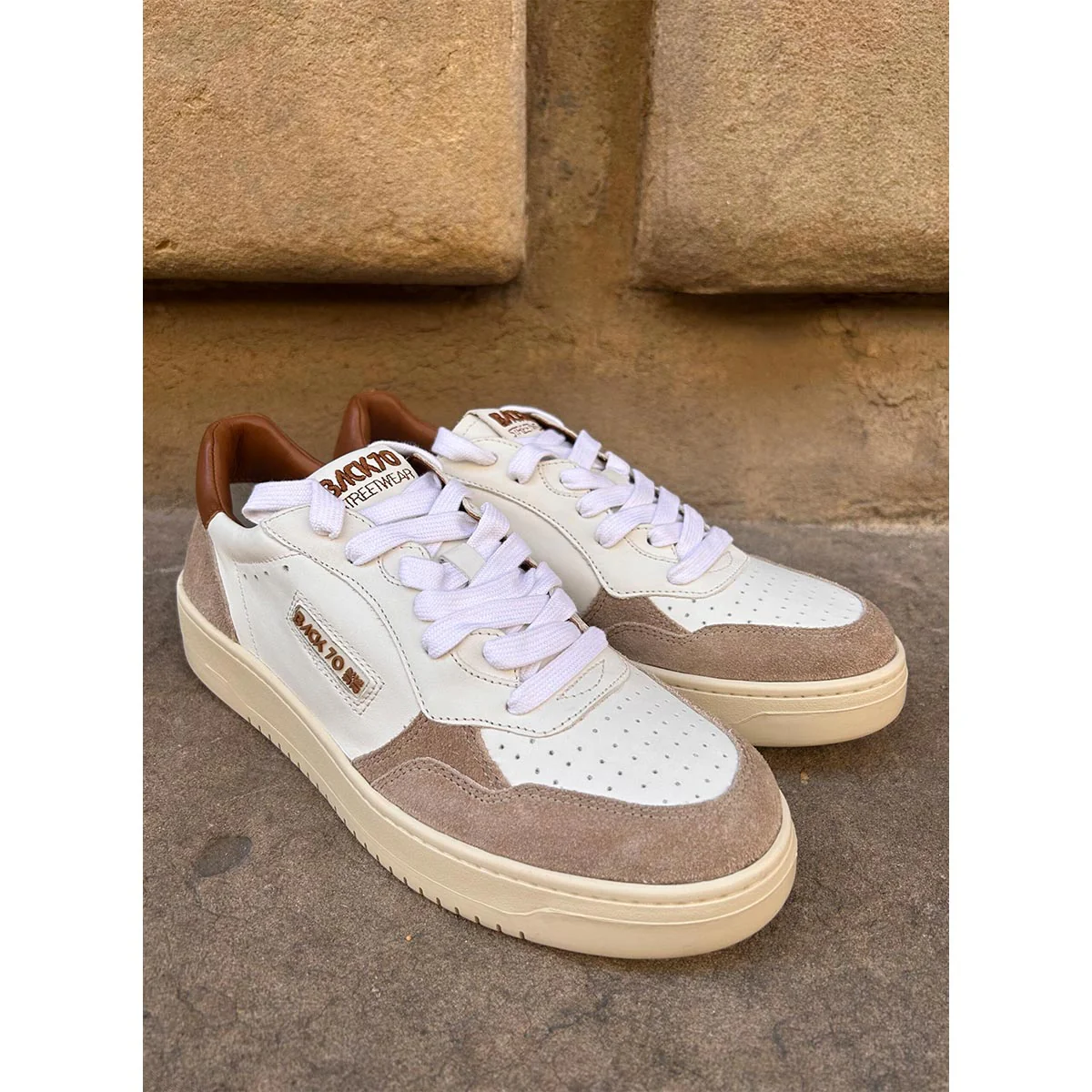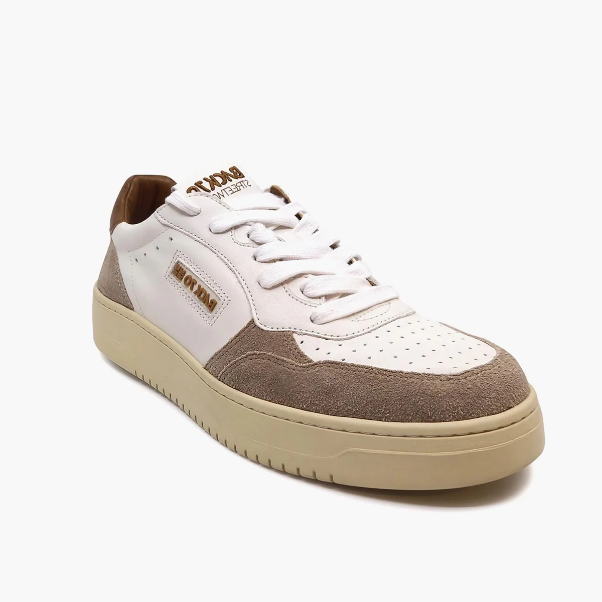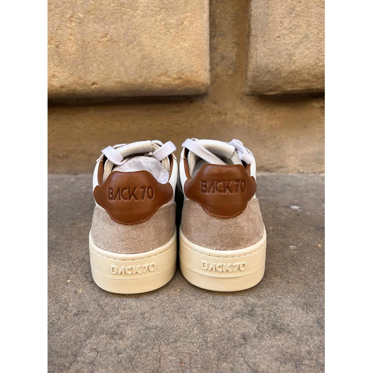Sneakers Back 70 con tomaia in pelle in colore bianco. Punta tonda. Chiusura con lacci. Linguetta con logo. Talloncino in pelle scamosciata in colore beige con logo. Suola in gomma. Soletta removibile.