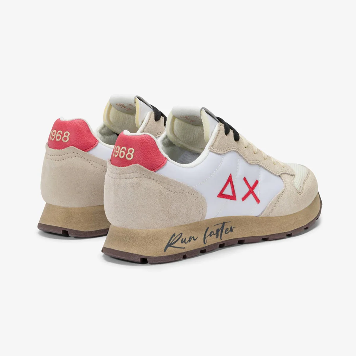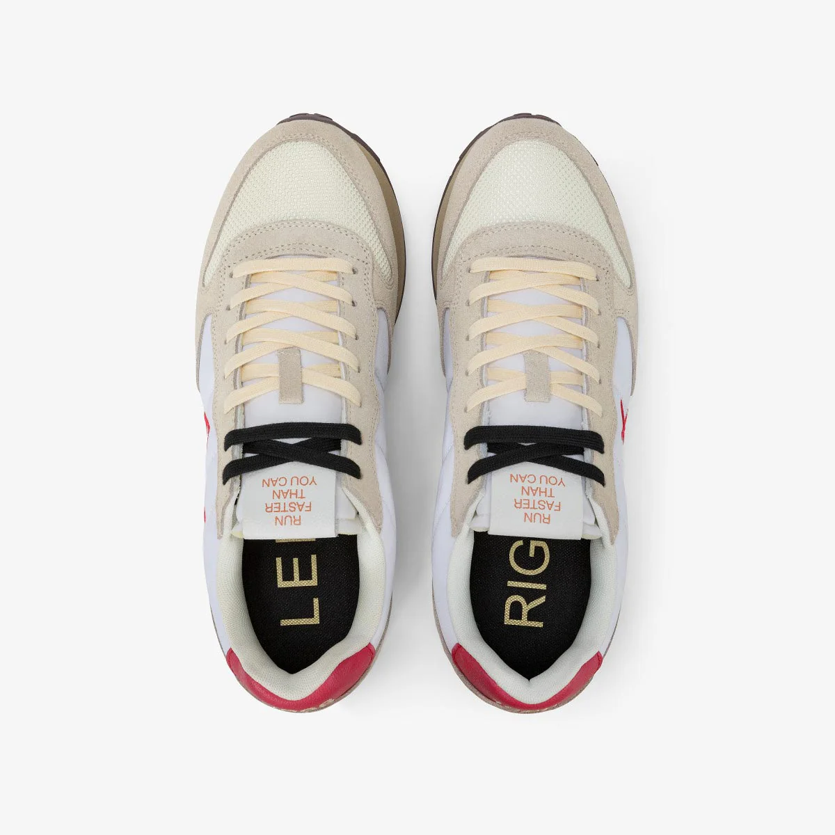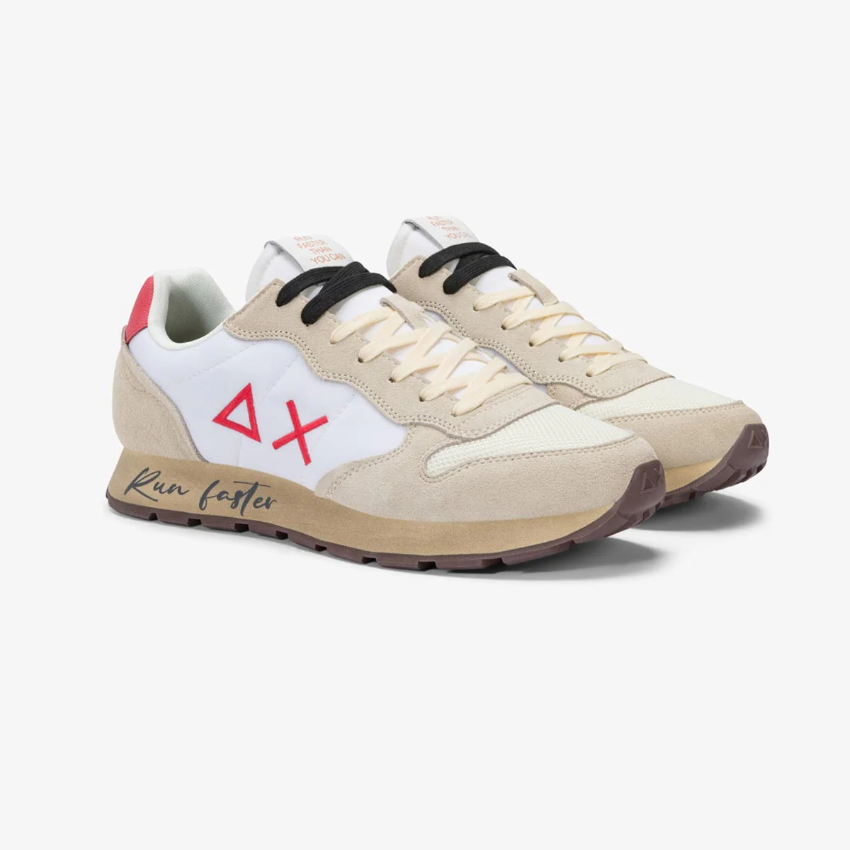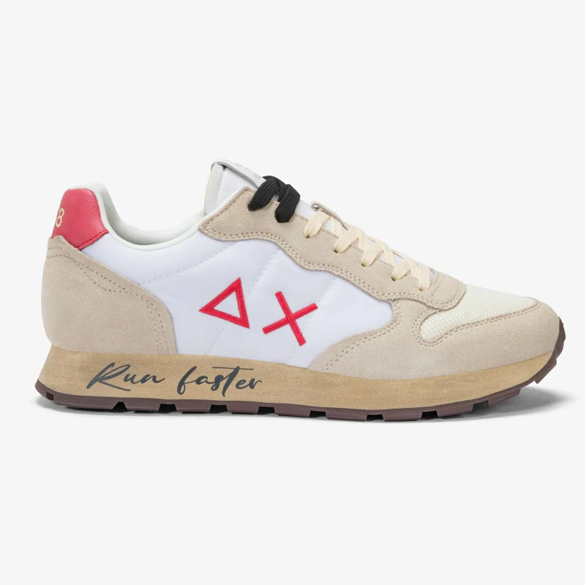 - Suola in EVA fresata a mano e battistrada in gomma con stampa lettering “Run faster”.