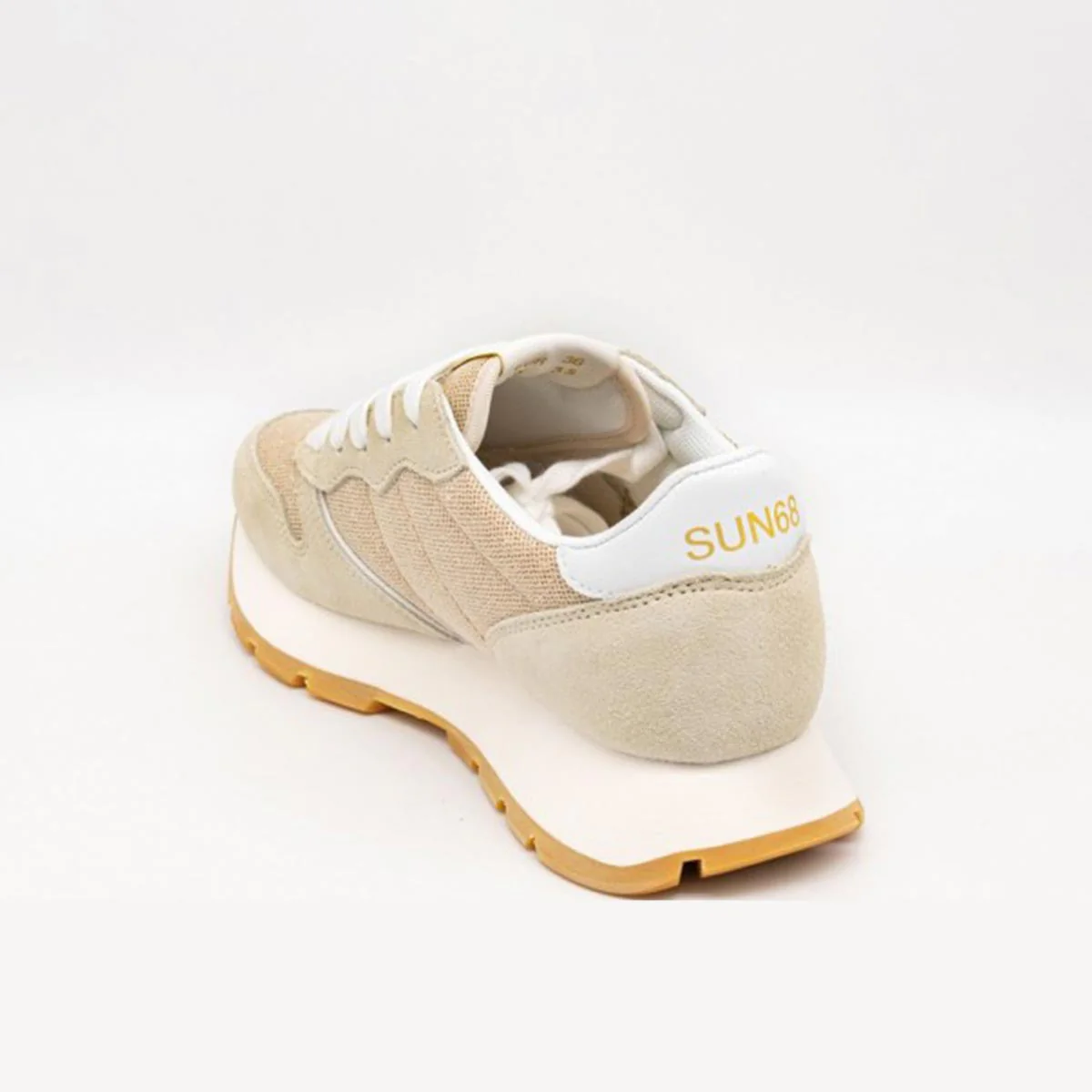 Sneakers in materiale glitterato, dettagli laminati e il logo ricamato in filo lurex. Due paia di lacci inclusi.