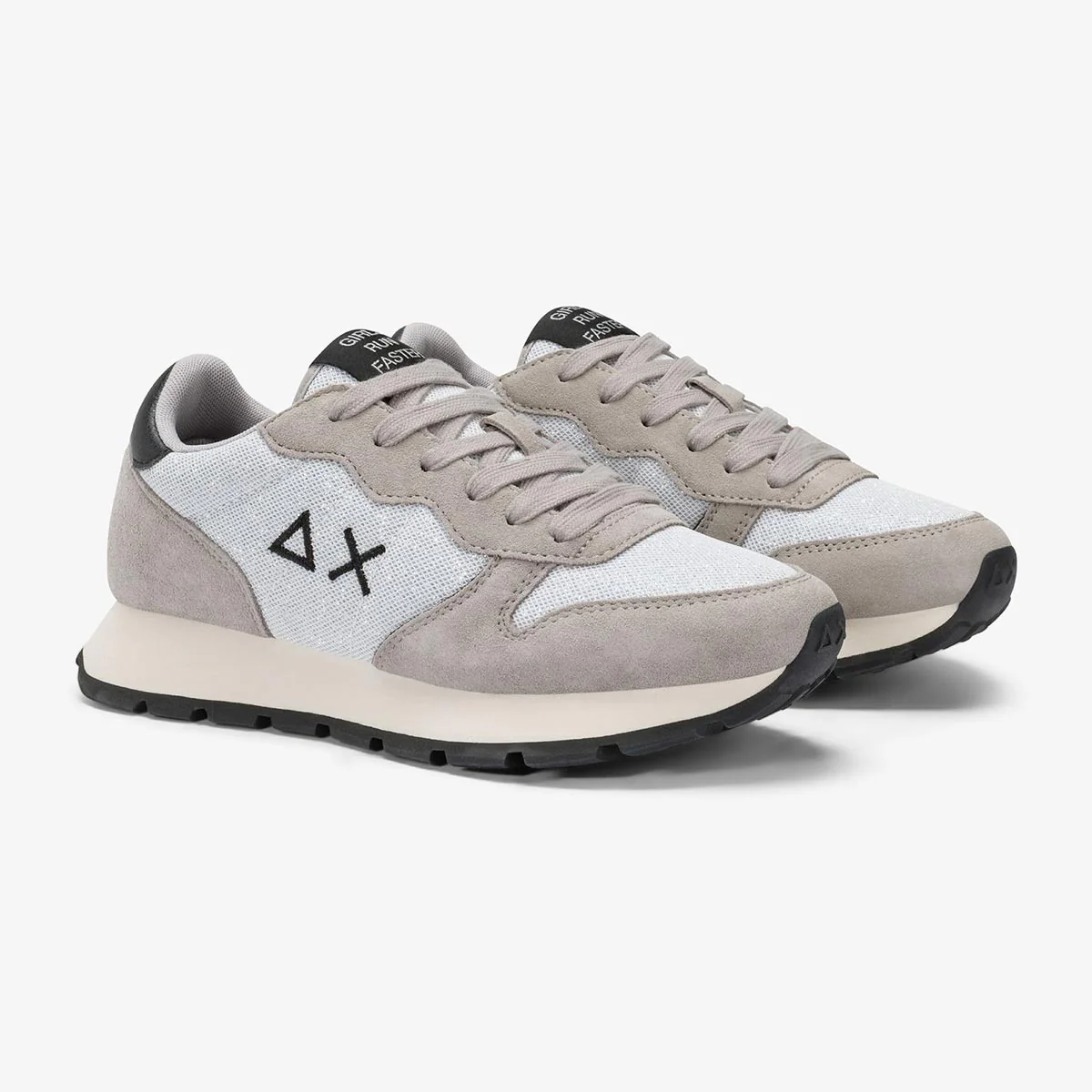 Sneakers in materiale glitterato, dettagli laminati e il logo ricamato in filo lurex. Due paia di lacci inclusi.