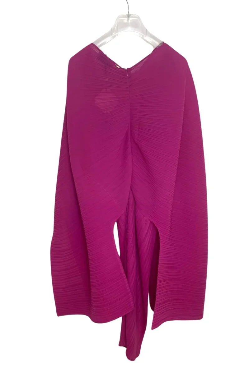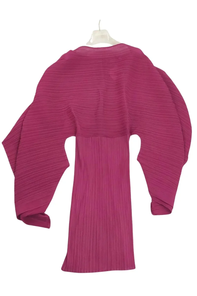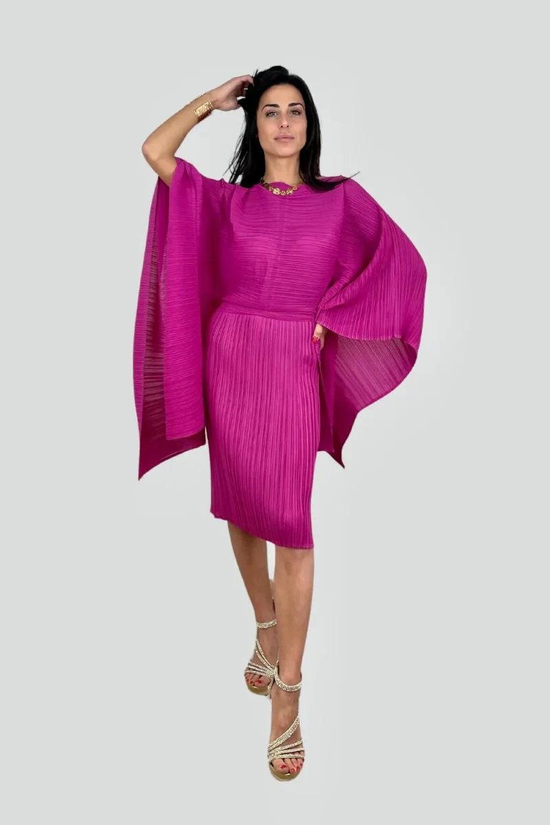 Abito midi fucsia con maniche farfalla