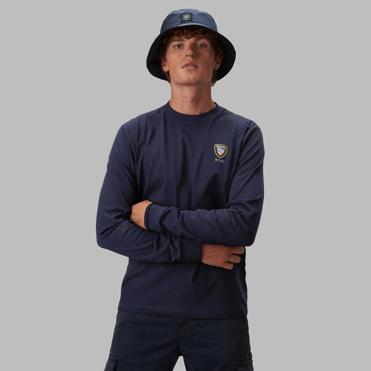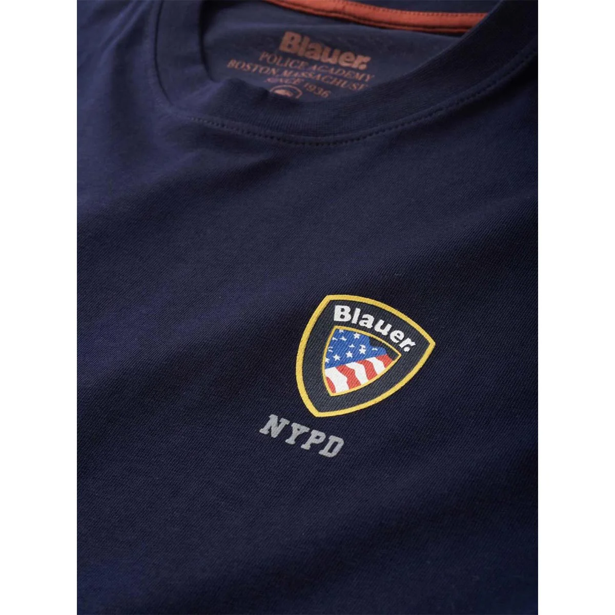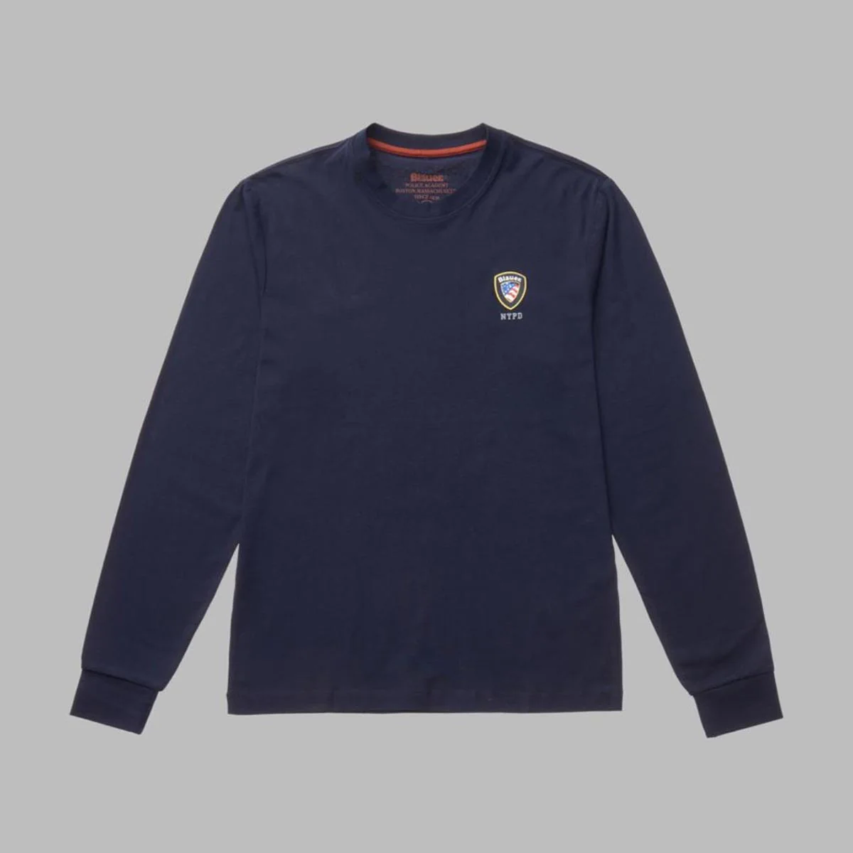 Scudo Blauer a colori e scritta sotto NYPD in contrasto colore stampato sul petto a sinistra.