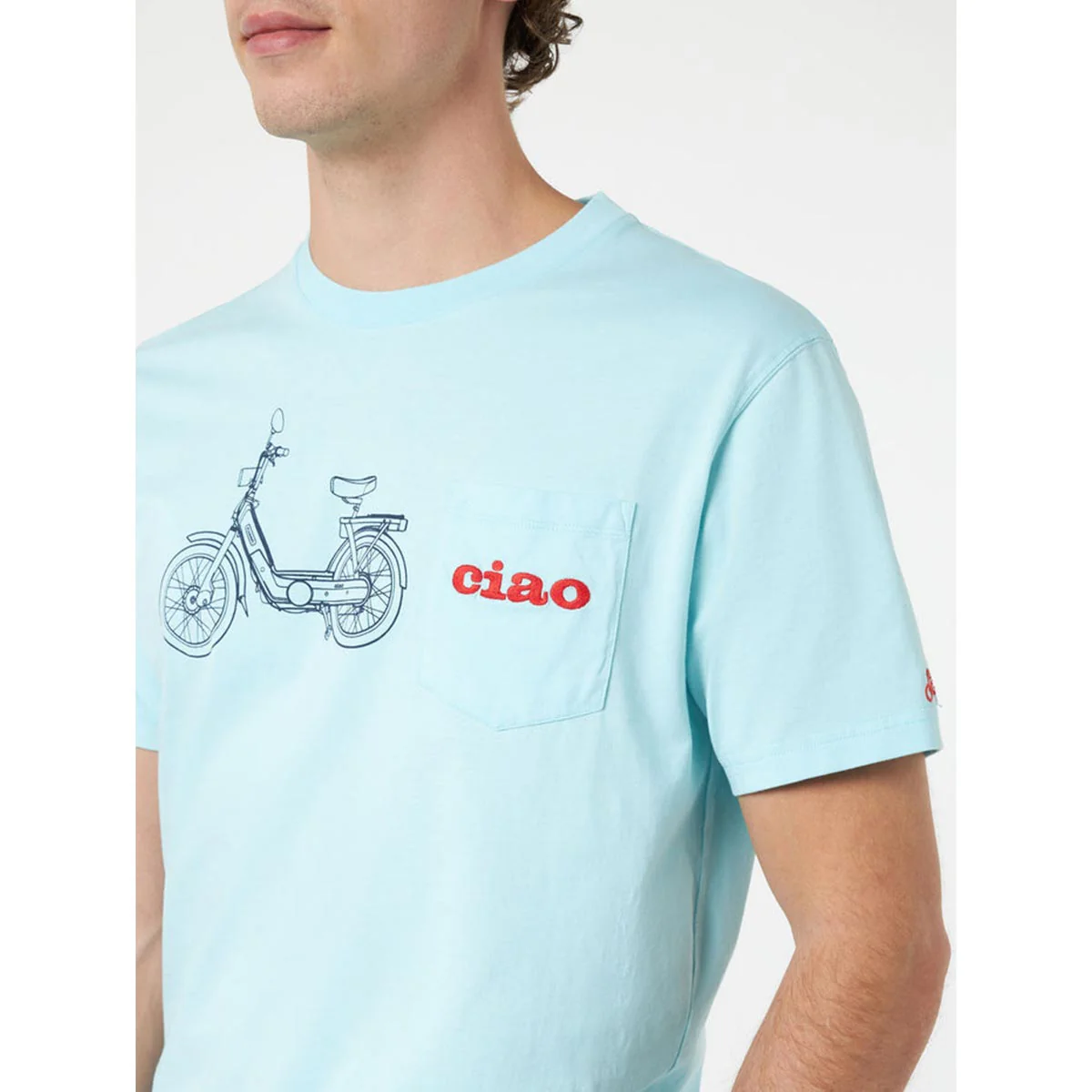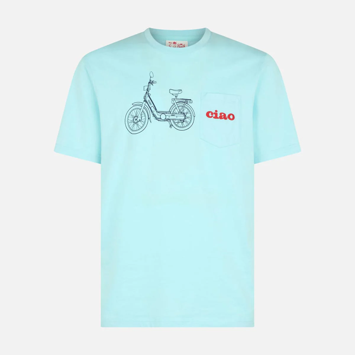 T-shirt maniche corte con taschino frontale decorato con ricamo “ciao”. Stampa Ciao scooterVestibilità regolareGirocolloLogo St.Barth ricamato sulla manica sinistra
