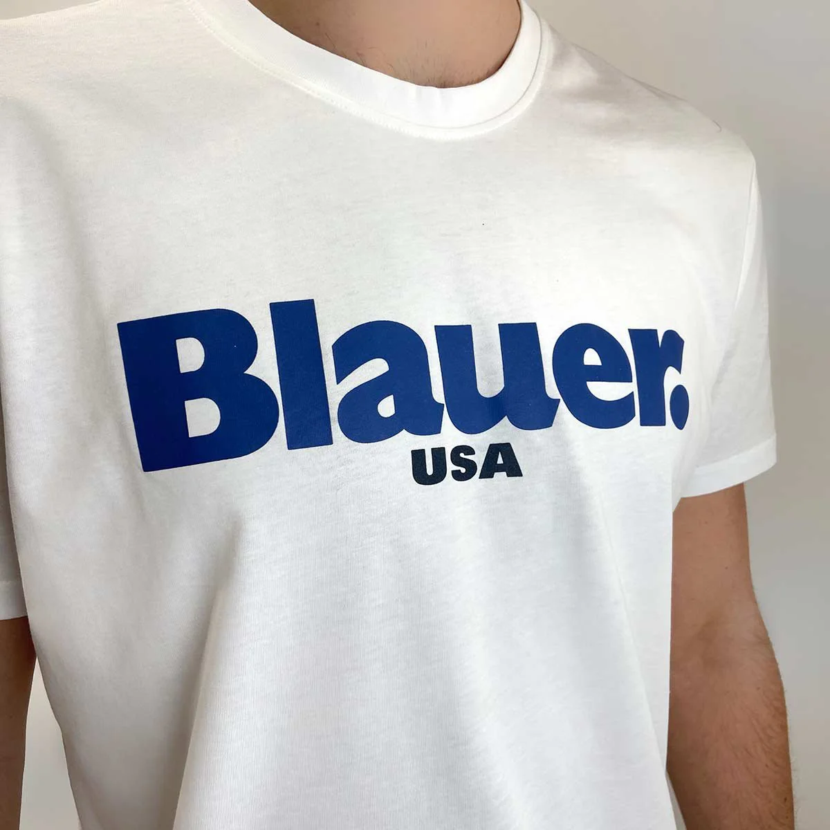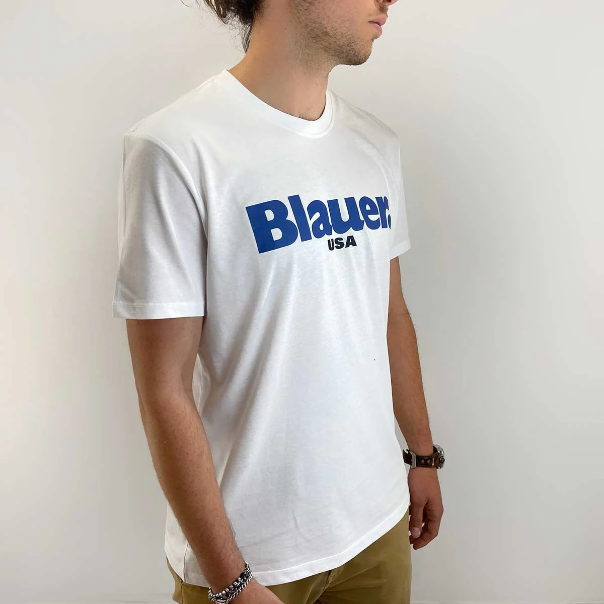 T-shirt uomo, a manica corta, in jersey.Girocollo a costina. Scritta Blauer USA sul petto davanti in contrasto colore.