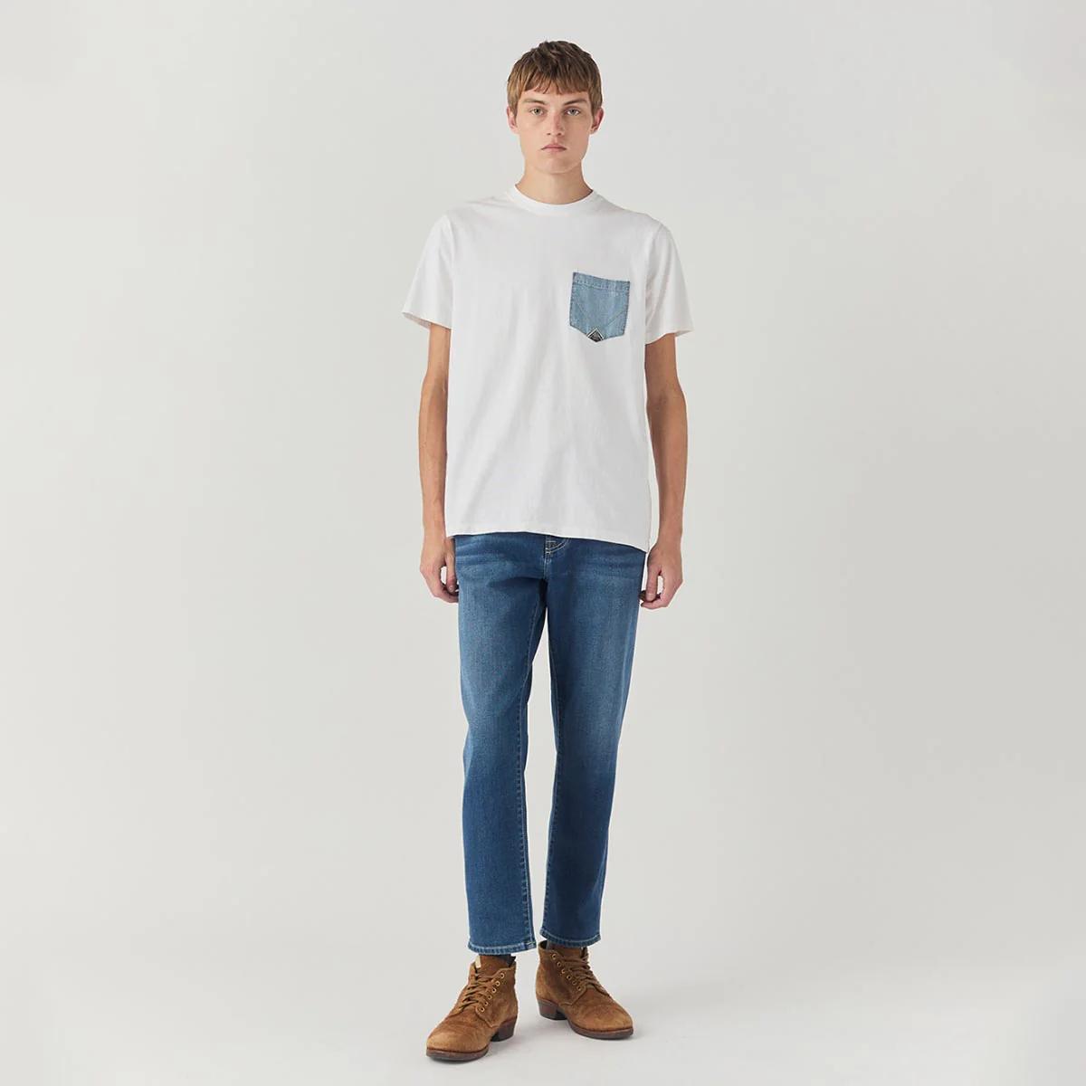 T-shirt con taschino in denim