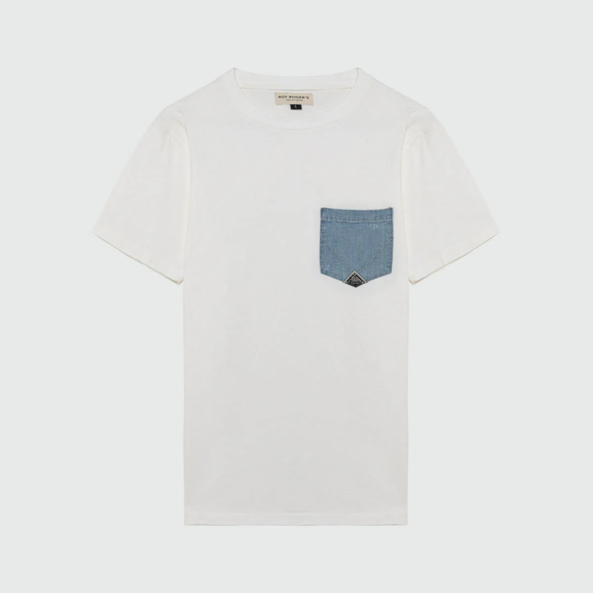 • Tasca in denim piatta sul petto con label Roy Roger’s applicata.