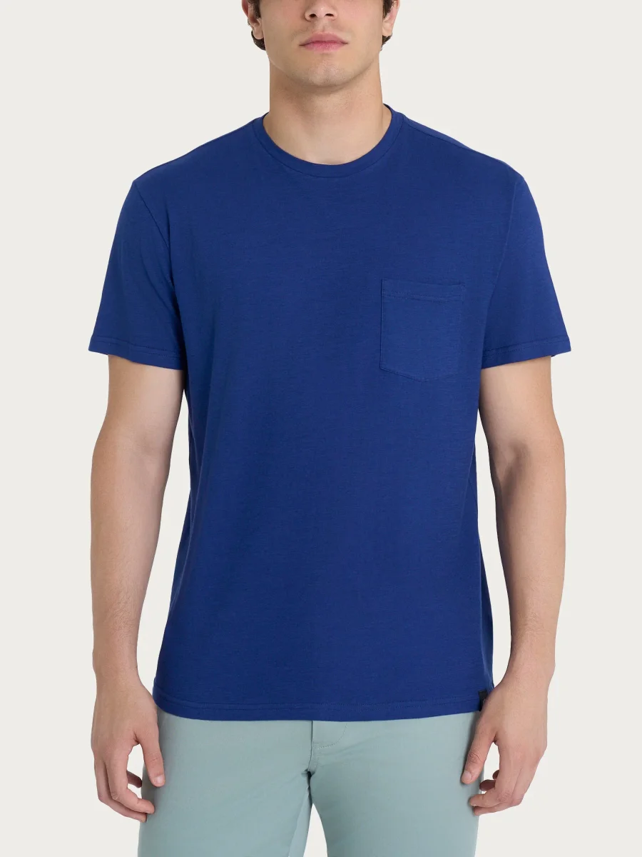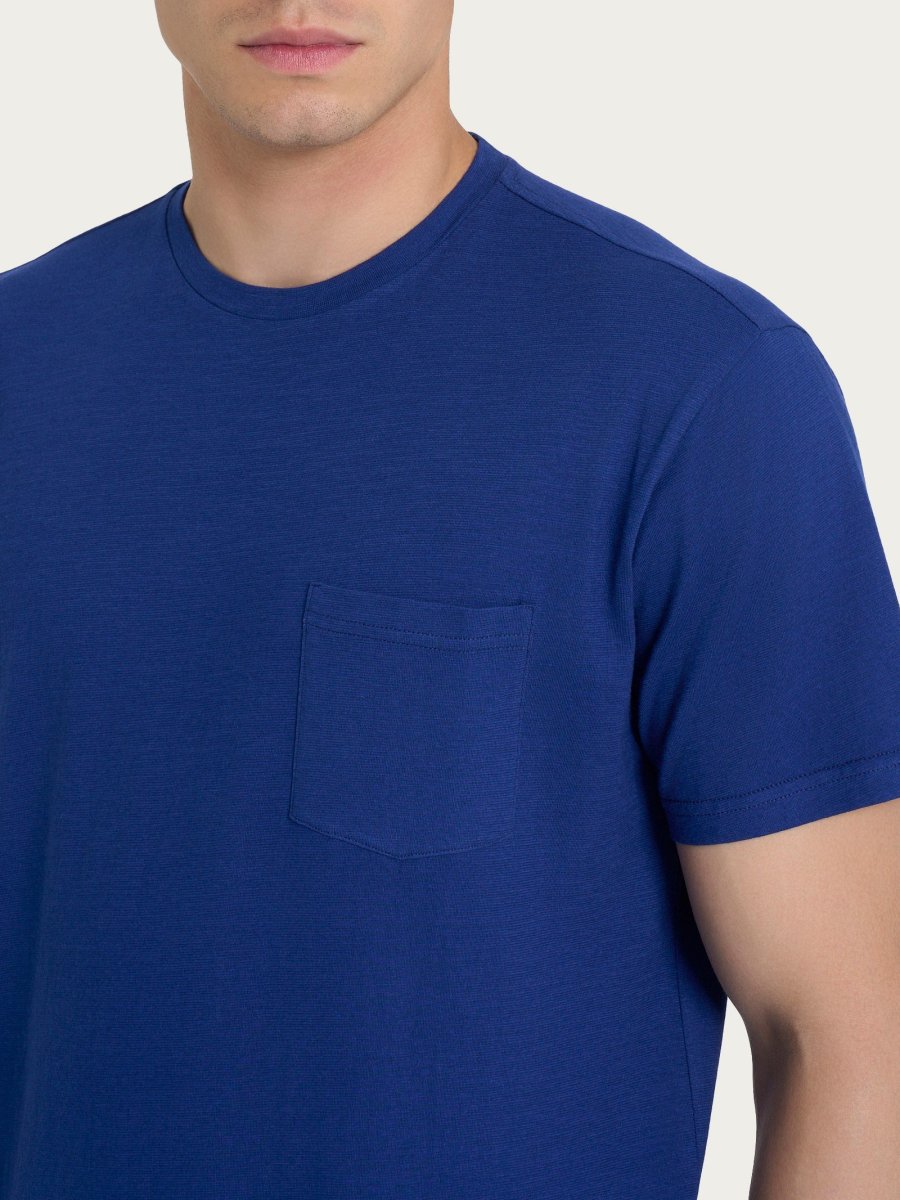 T-shirt girocollo con taschino in slub jersey di cotone – Blueberry