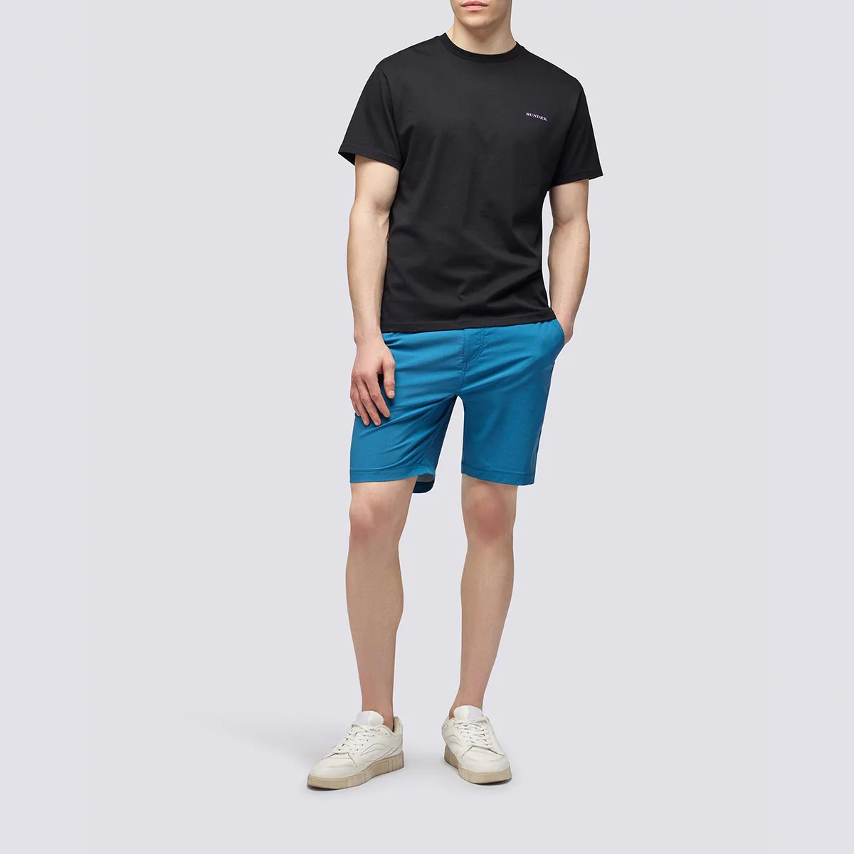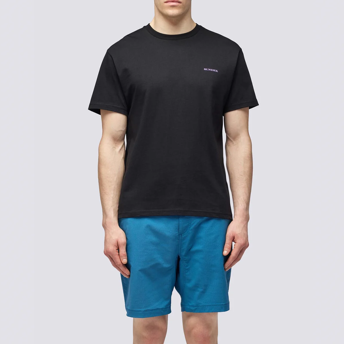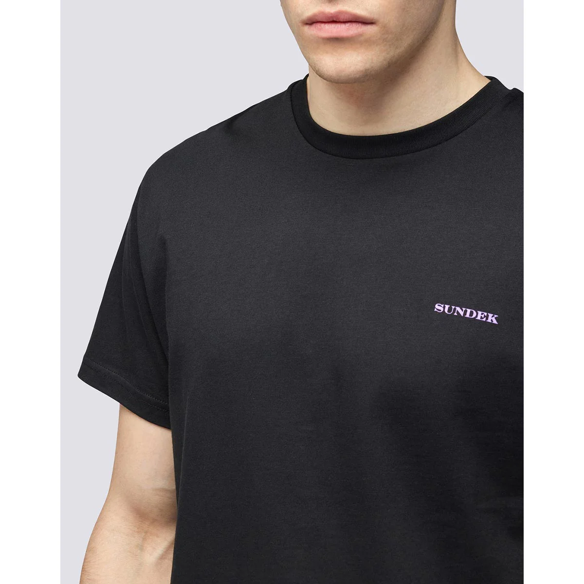 Maglia girocollo con stampa palms trip sul retro. Mini ligo con scritta “Sundek” sul petto in contrasto colore.