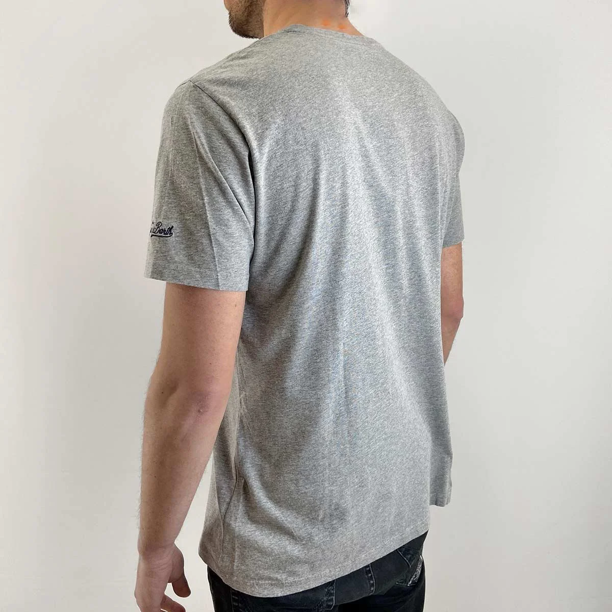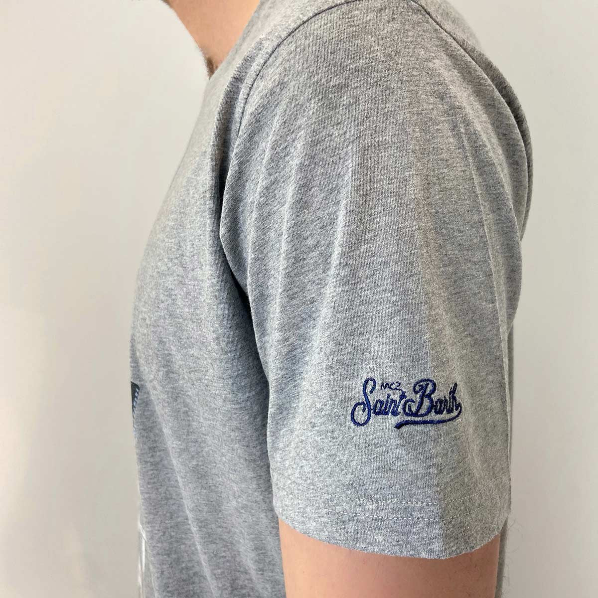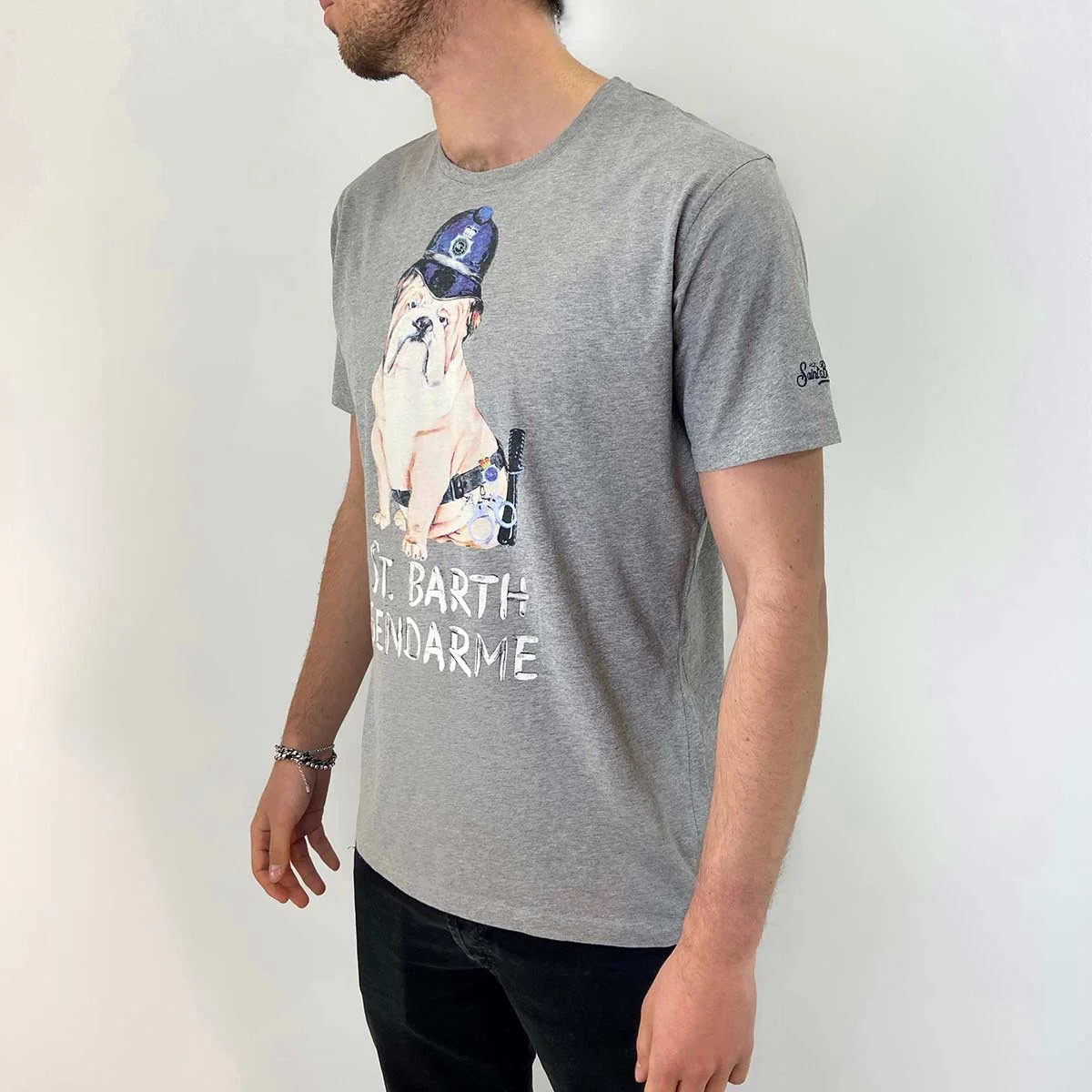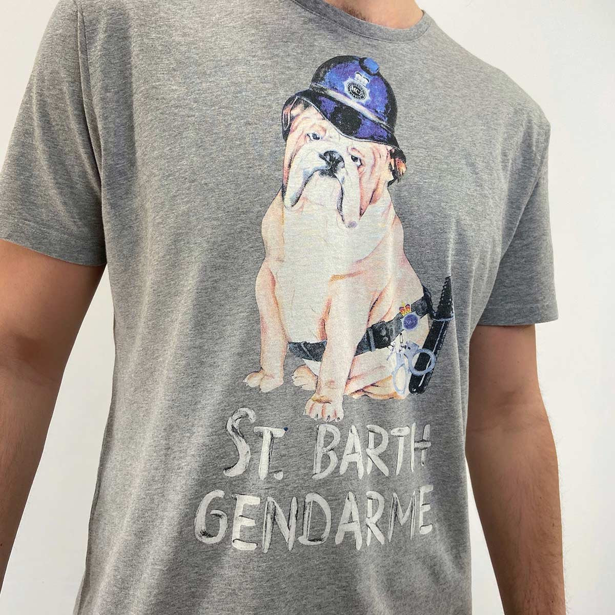 T-shirt grigia stampa frontale bull dog “st. barth gendarme”. Scollo tondo, maniche corte
