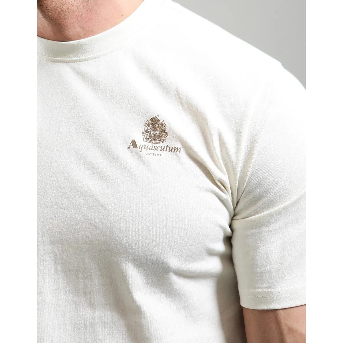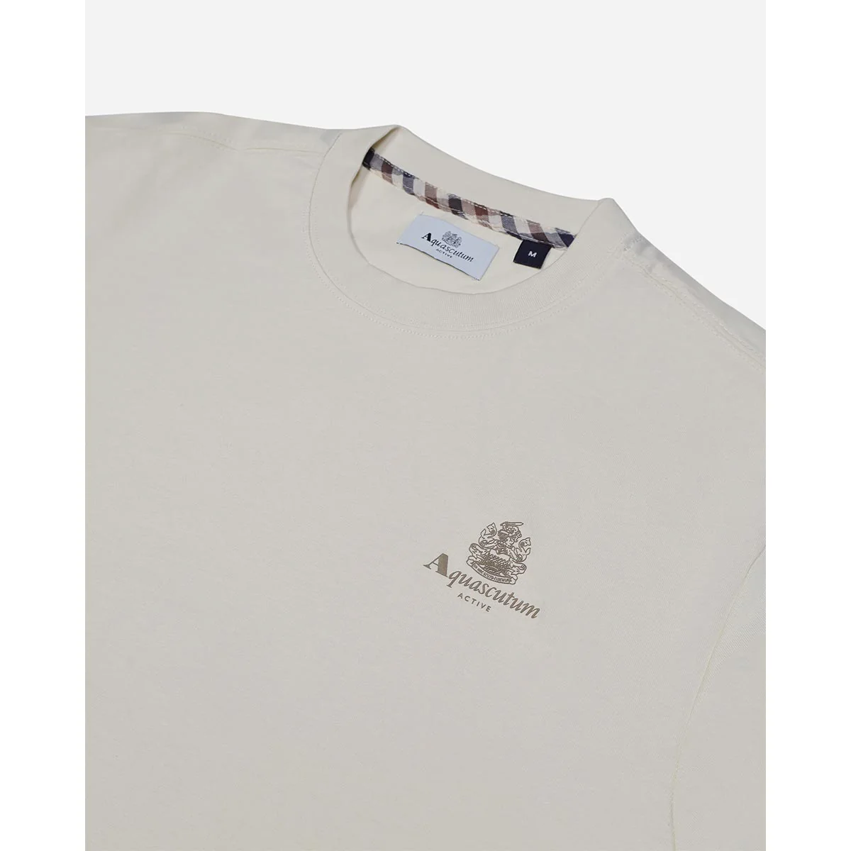 Aquascutum marchio storico britannico. Realizzata in 100% cotone e caratterizzata da un micro logo stampato in plastisol sul petto a sinistra, questa T-shirt ha una comoda vestibilità regolare/larga.