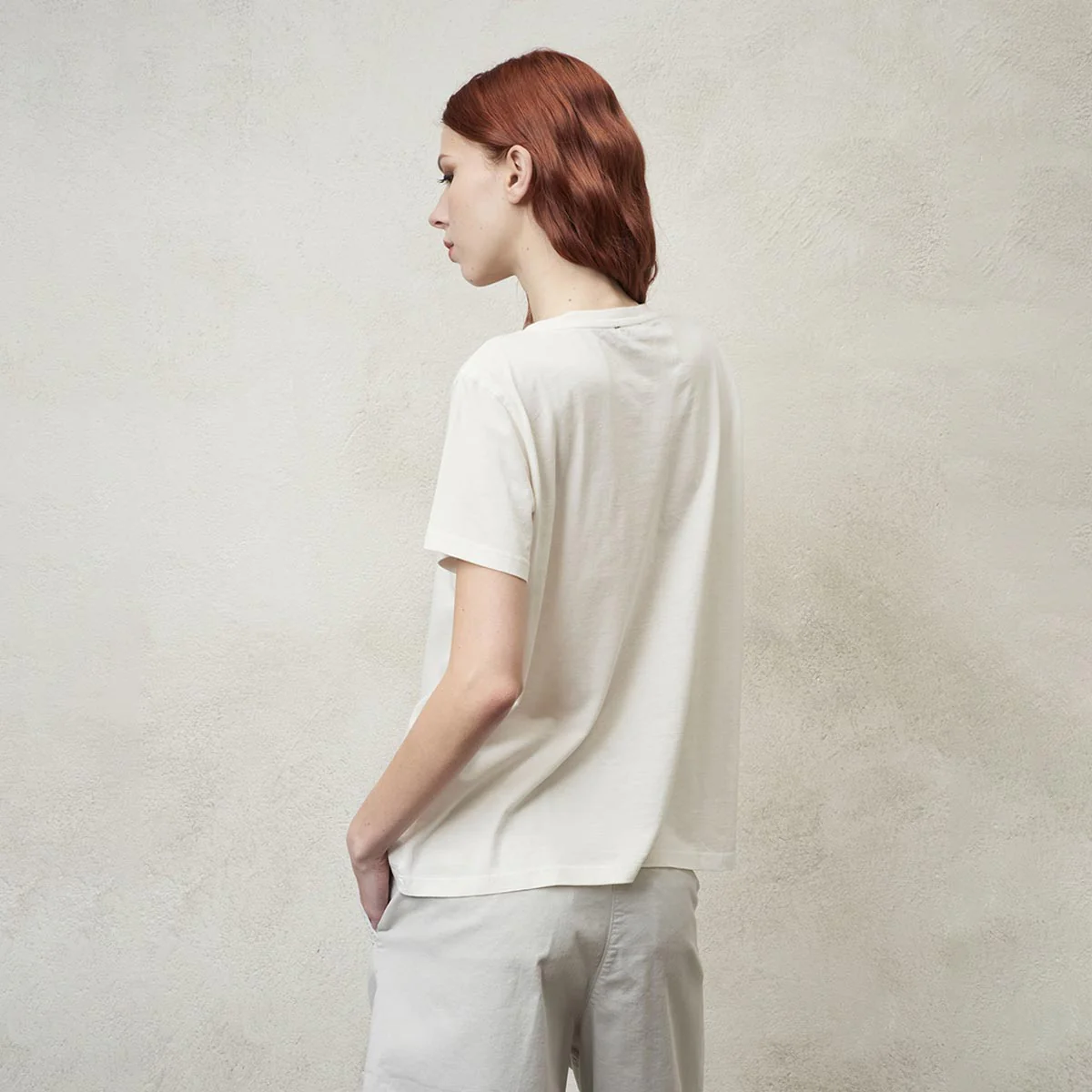 T-shirt donna a manica corta con girocollo a costina.