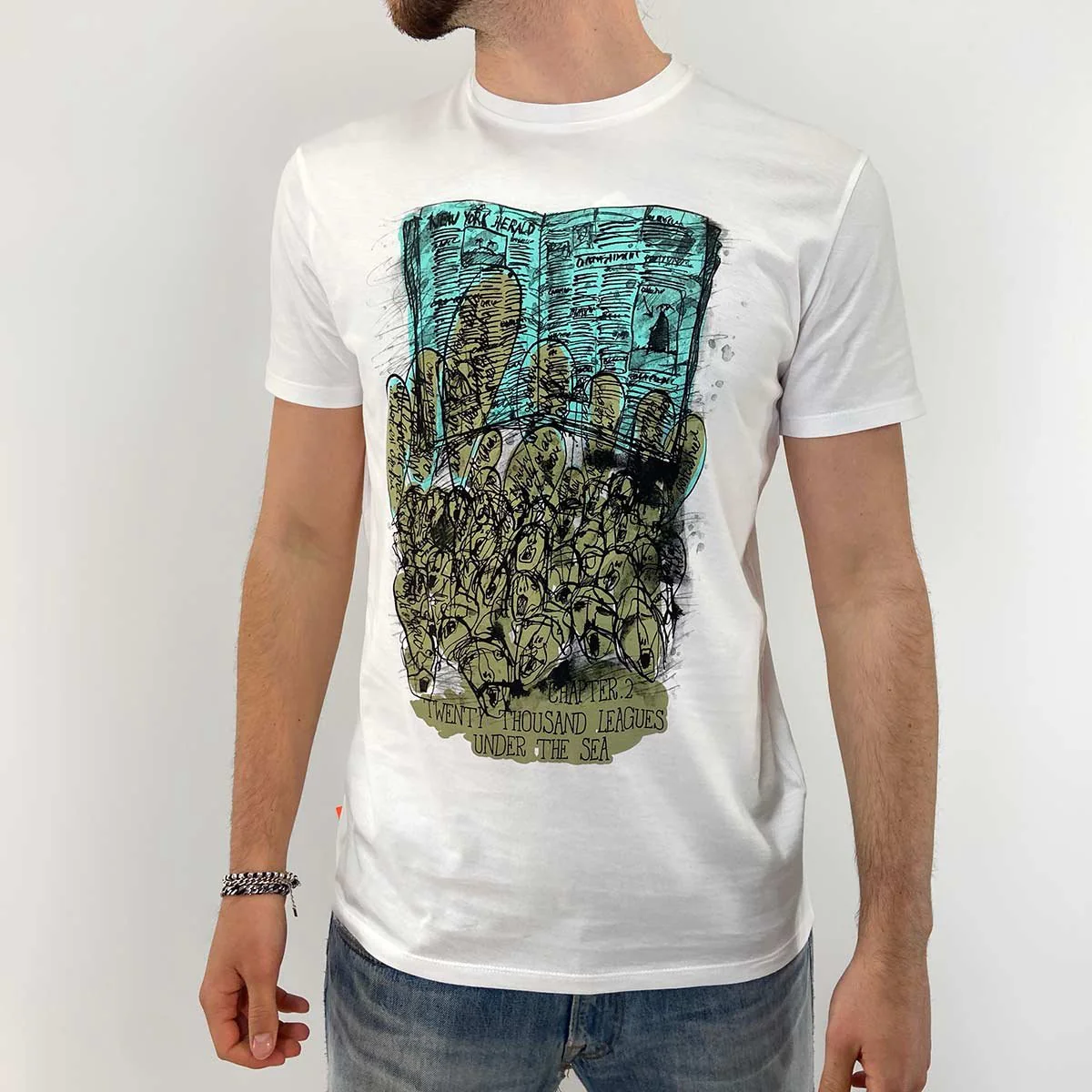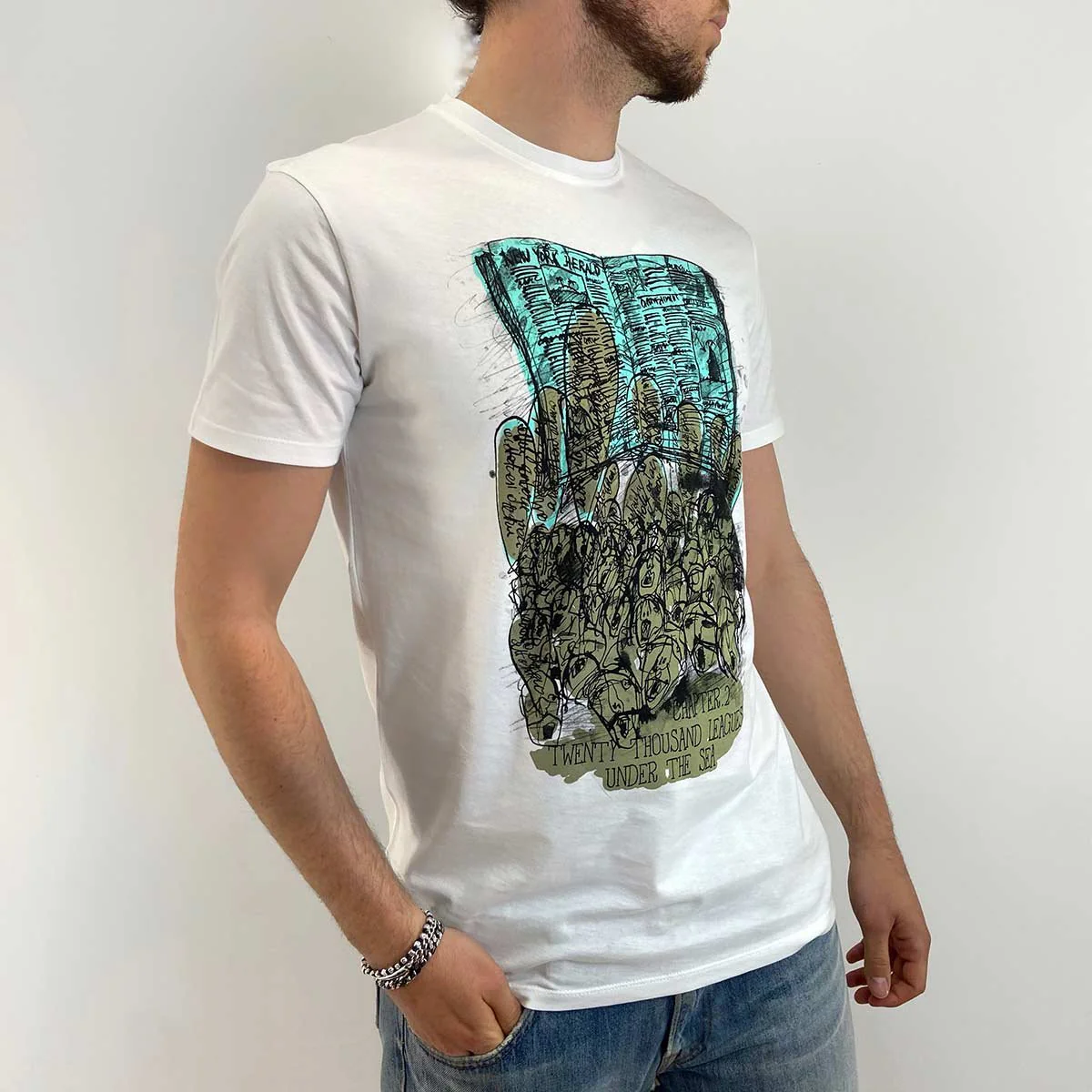 T-shirt in jersey di cotone con illustrazione stampata ispirata all’opera “Ventimila leghe sotto i mari”.