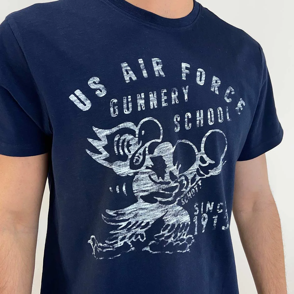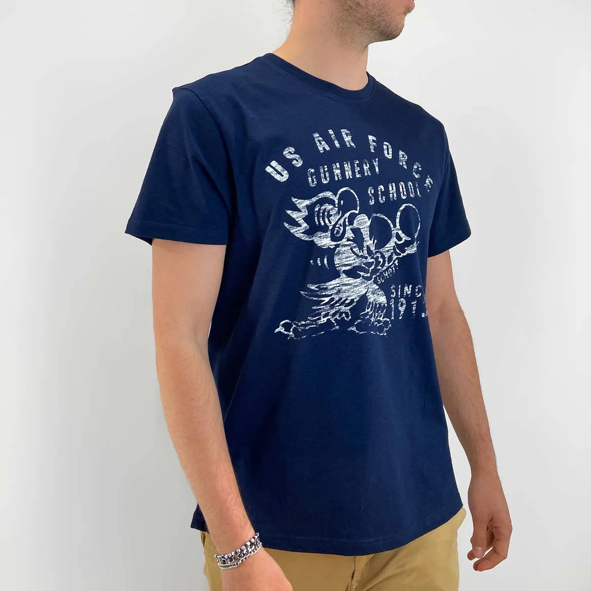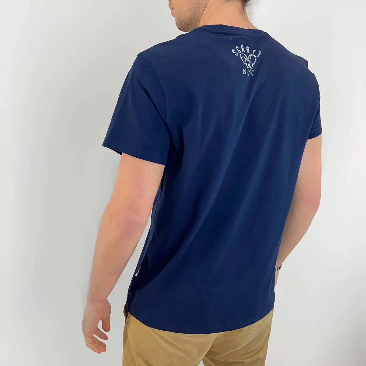 T-shirt uomo, a manica corta. Girocollo a costina. Stampa Schott retrò sul petto davanti dall’effetto consumato