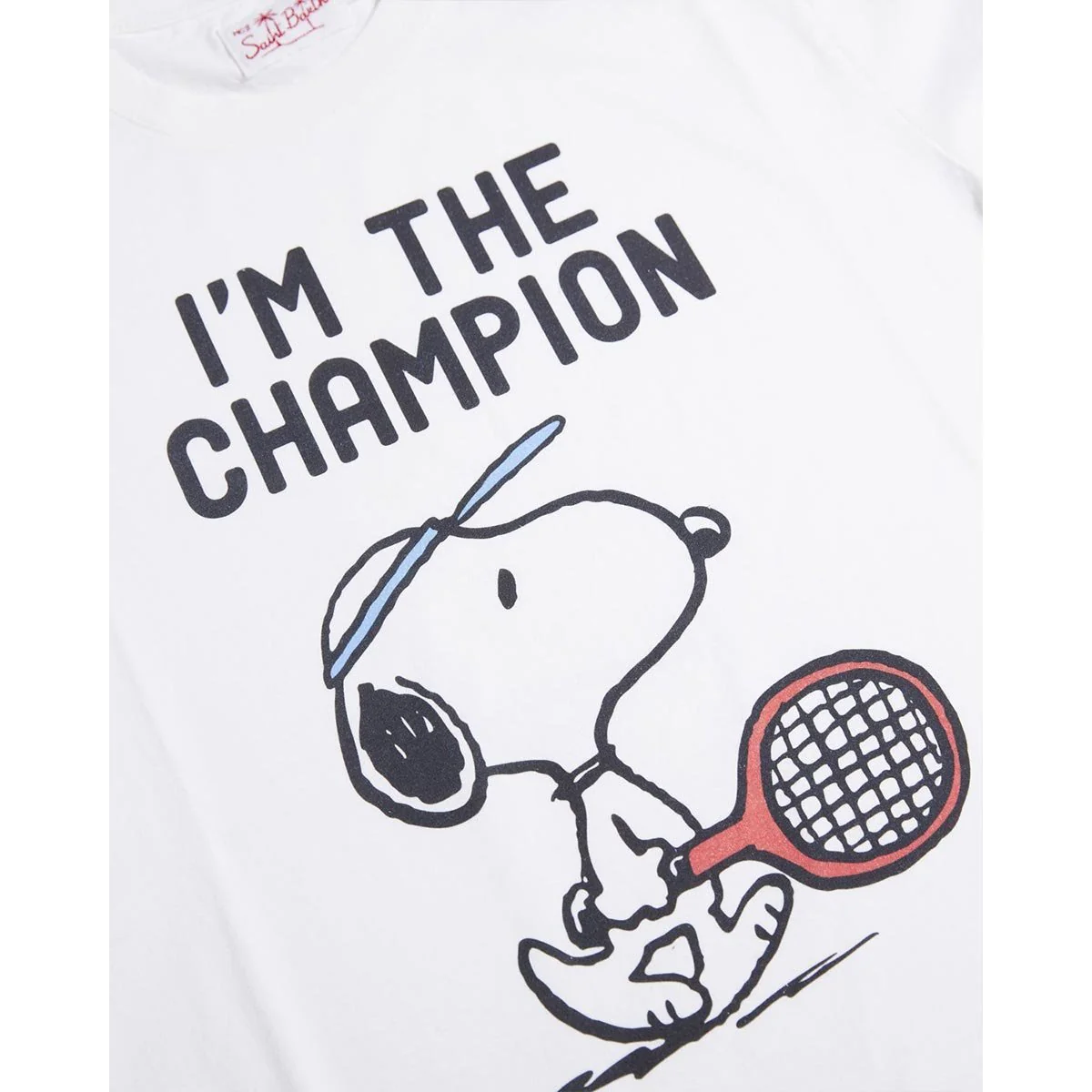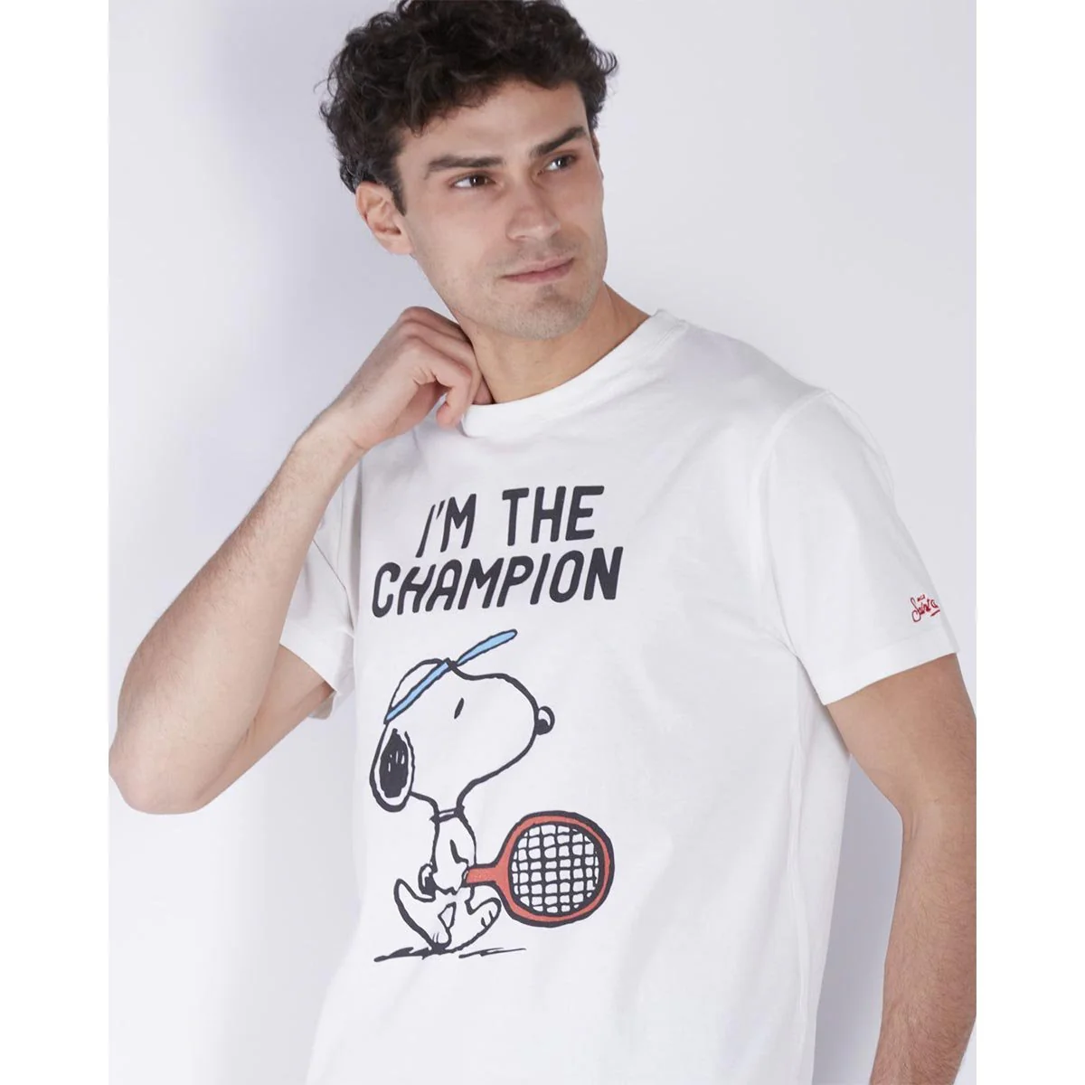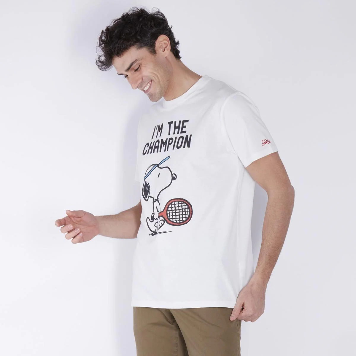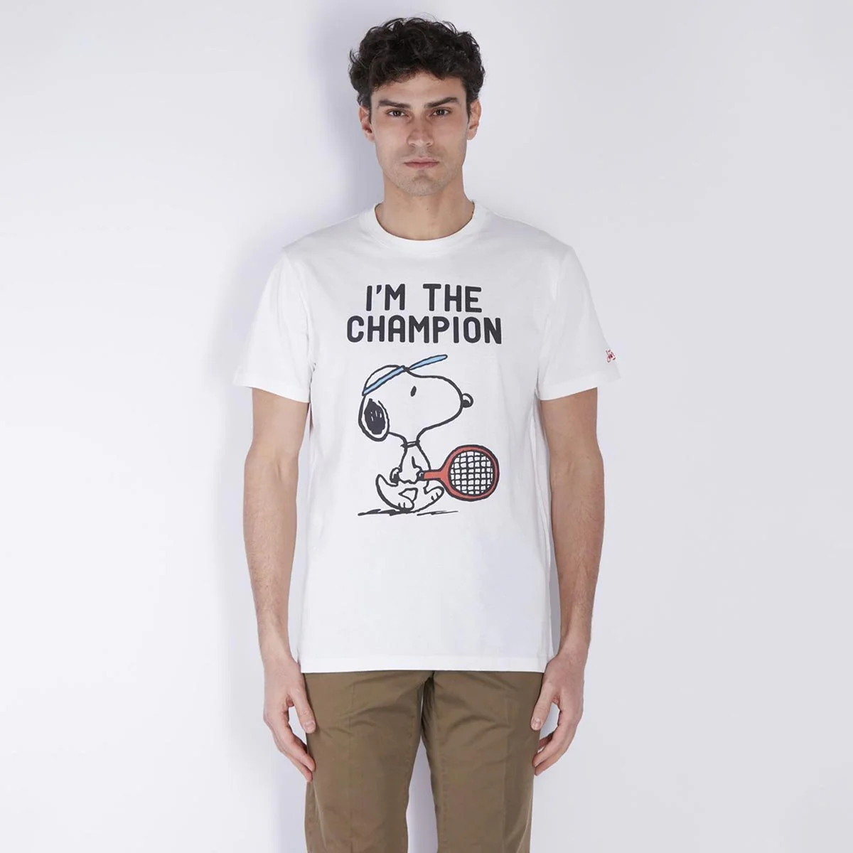 T-shirt uomo cotone bianca stampa Snoppy paddle, vestibilità regolare, scollo rotondo, maniche corte.