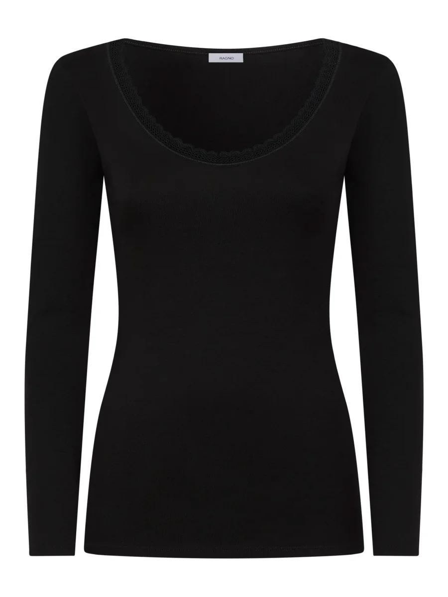 Thermo Cotton – Maglietta girocollo a manica lunga in caldo cotone – Nero