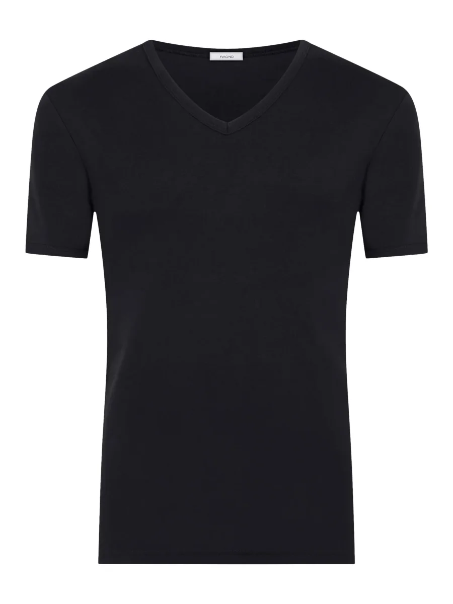Maglietta scollo V a manica corta in maglia unita.