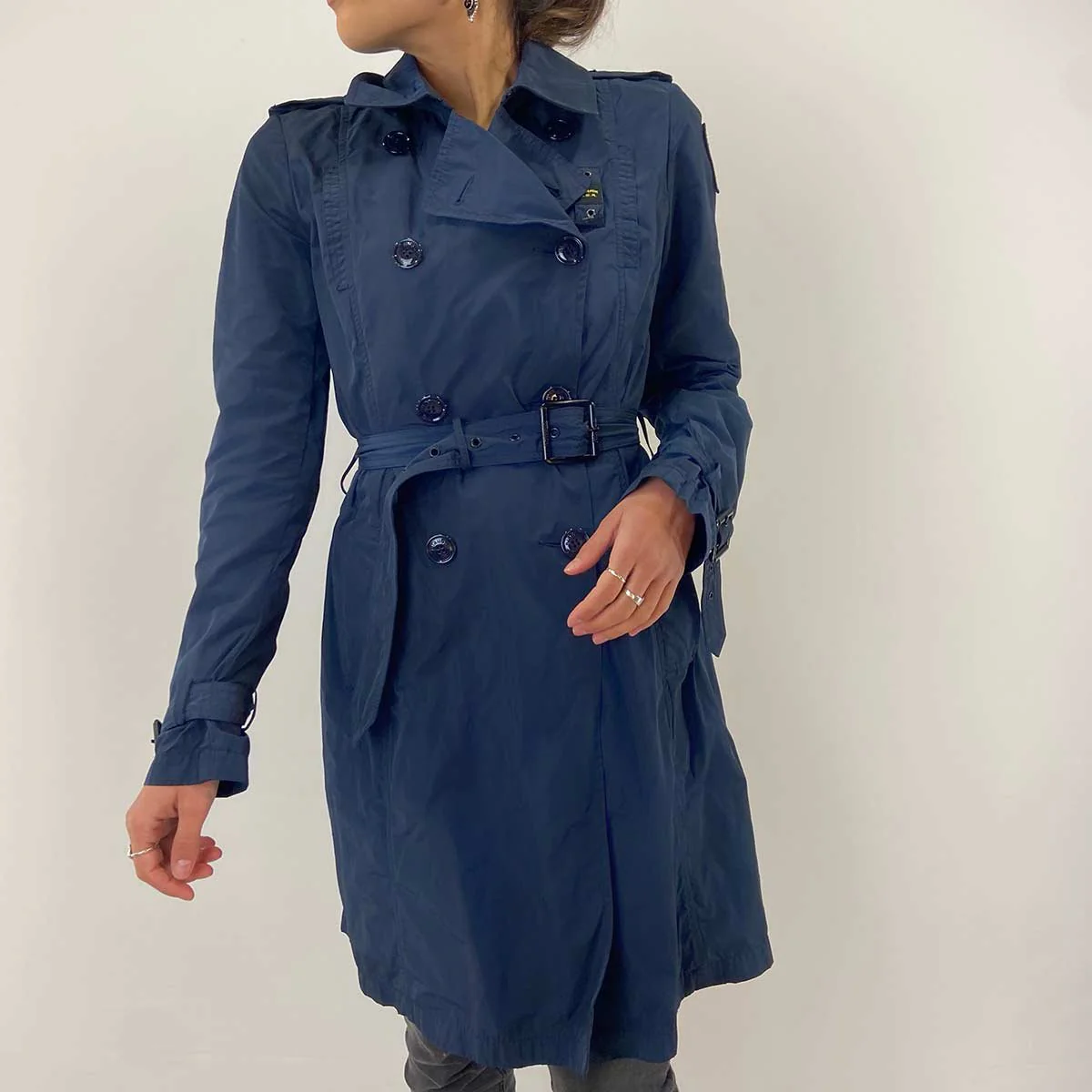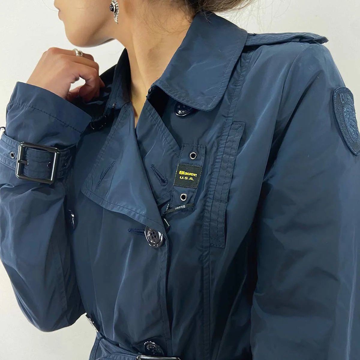 Cintura in vita con fibbia. Due tasche aperte sul davanti e due tasche altezza petto. Manica con fibbia. Petch con logo su spalla sinistra