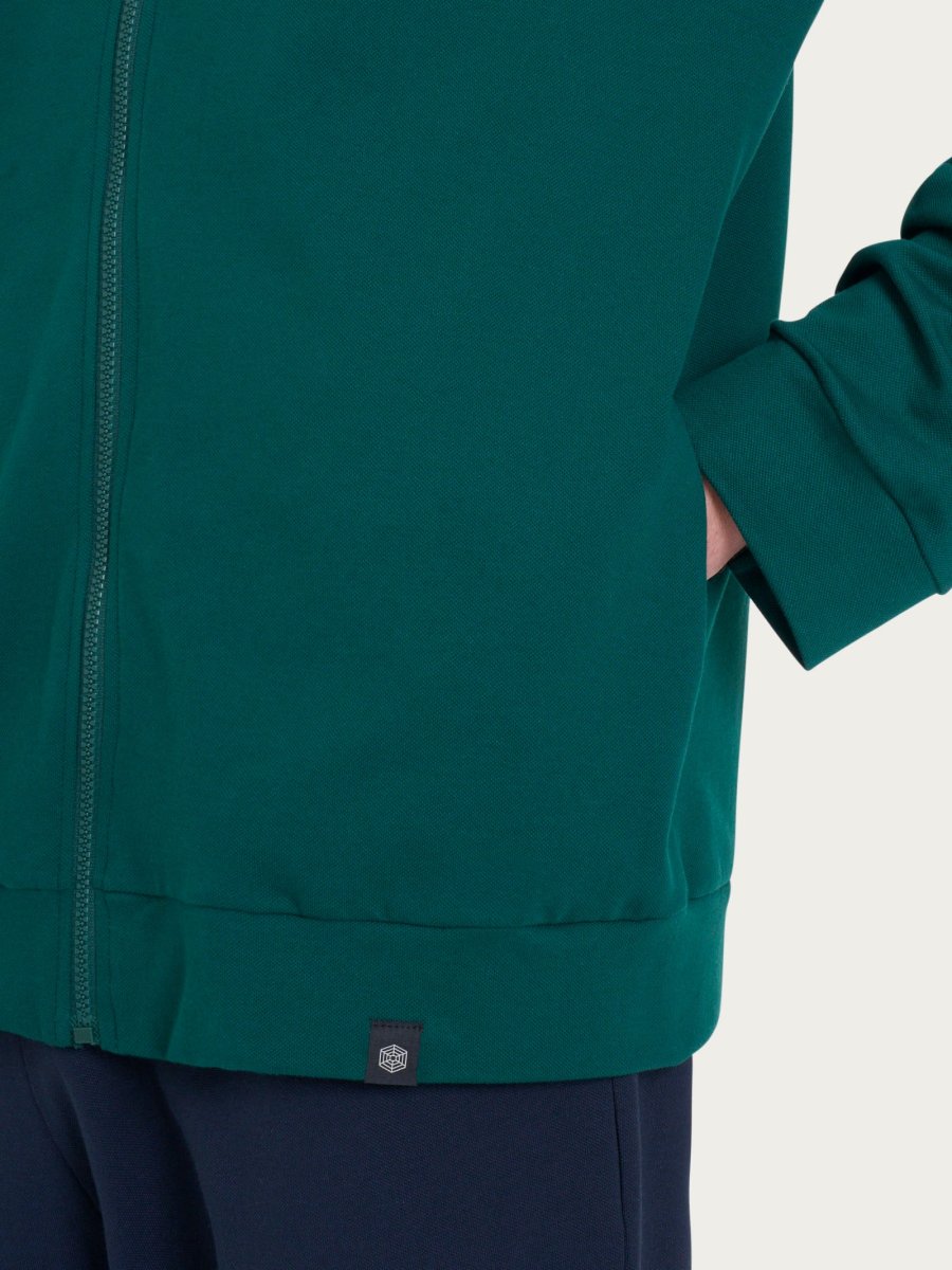 La trama piquet offre una superficie leggermente rialzata, donando una sensazione di morbidezza al tatto, mentre la presenza di fibre elastiche stretch conferisce una notevole flessibilità e adattabilità al tessuto.