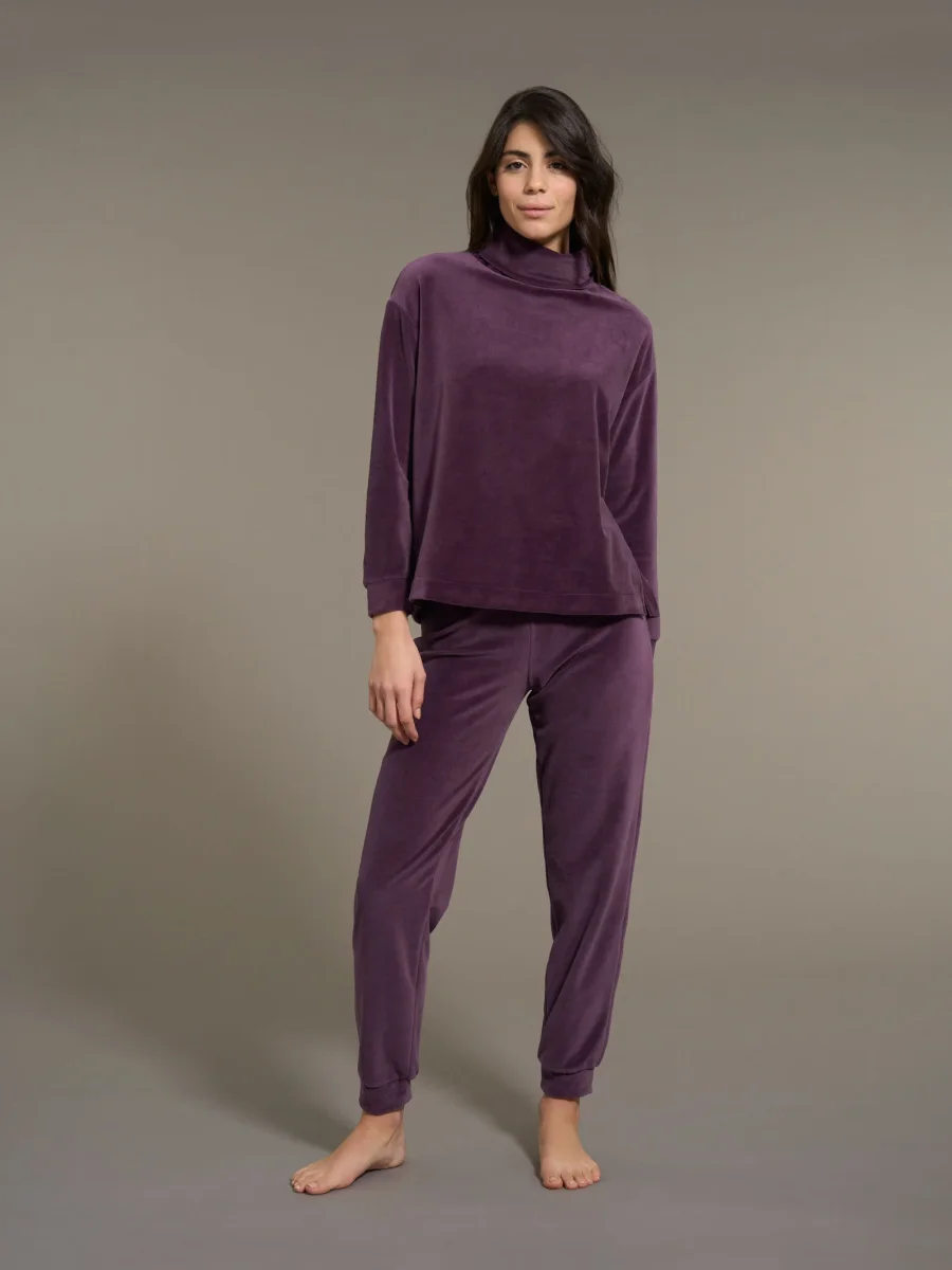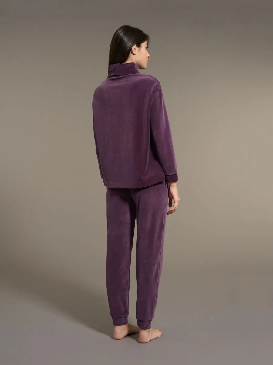 Tuta da donna in ciniglia di misto cotone, ideale per una serata rilassante.