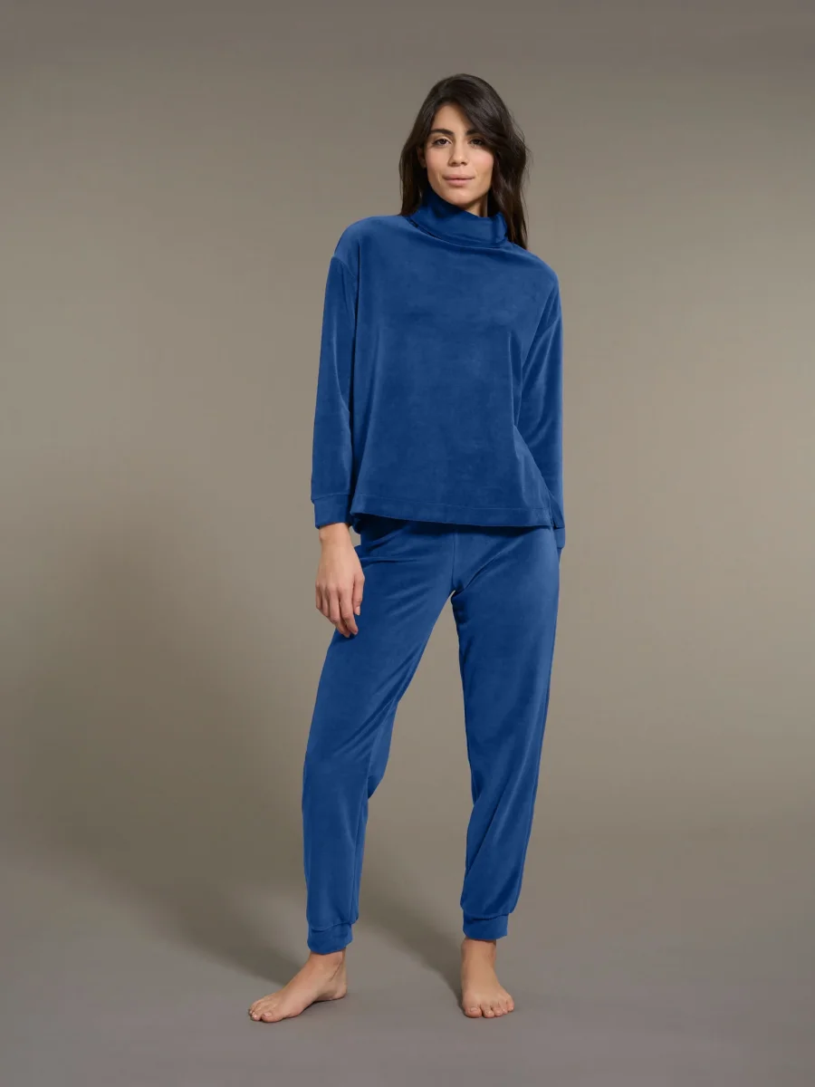 Tuta da donna in ciniglia di misto cotone, ideale per una serata rilassante.