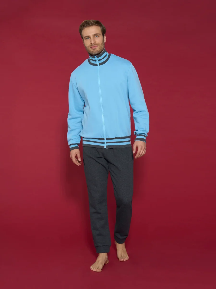 Tuta felpata da uomo in cvc fleece di misto cotone, ideale per stare in casa.