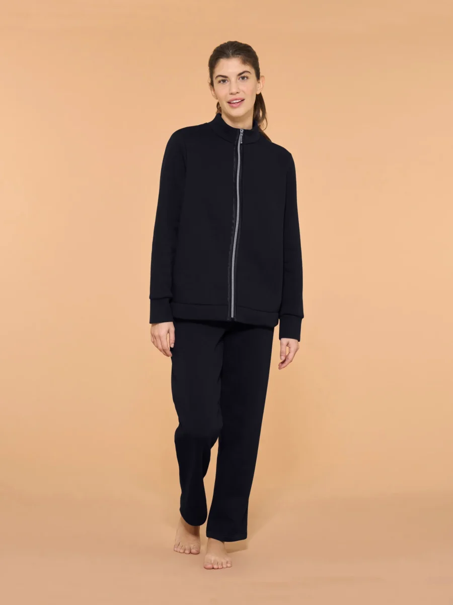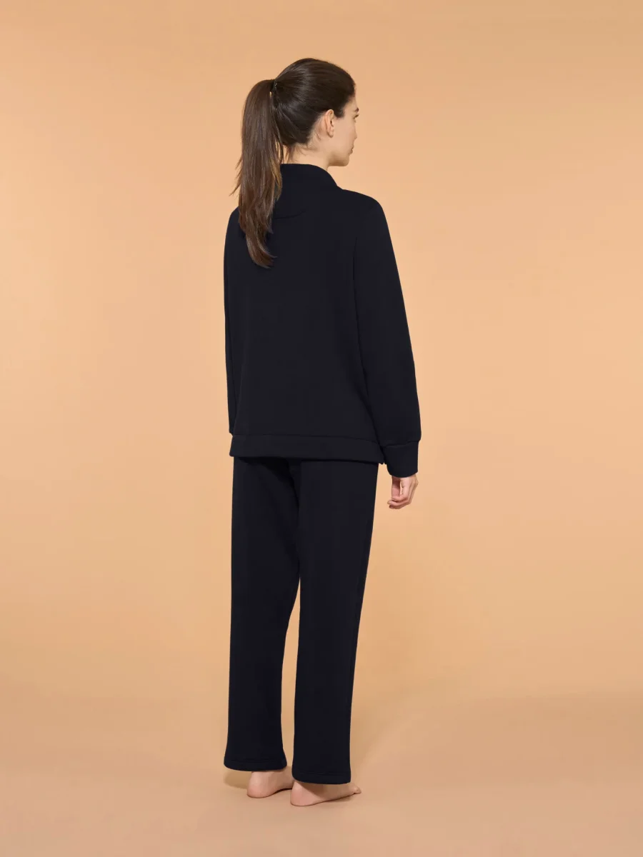 Con un mix perfetto tra eleganza e confort, questo capo è composto da un bomber con collo alto e zip e da un pantalone con vestibilità regular e una tasca sul fianco che aggiunge praticità e funzionalità.