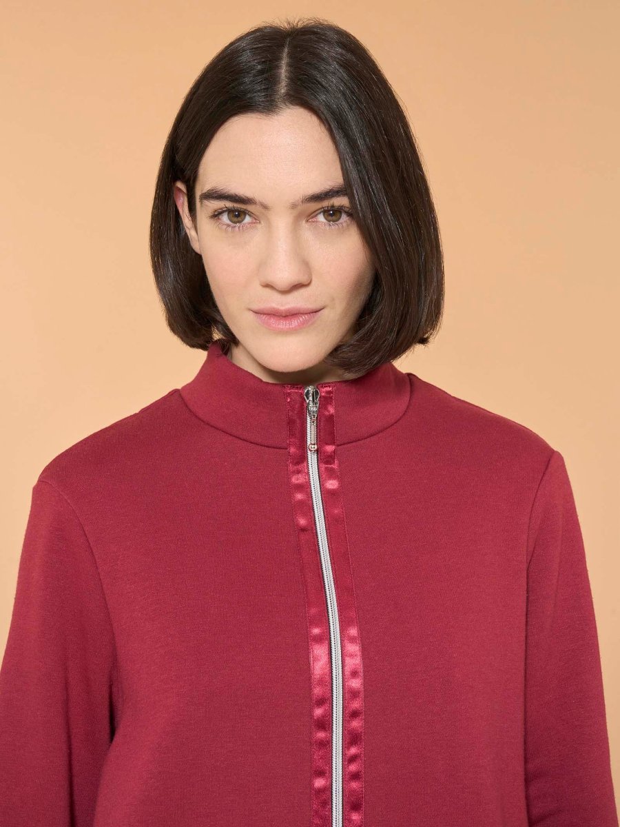 La zip rinforzata da un dettaglio a contrasto dall’aspetto lucido e vivace, oltre ad aggiungere praticità e facilitare l’indossabilità del capo è un elemento distintivo che dona brillantezza ed eleganza al capo.