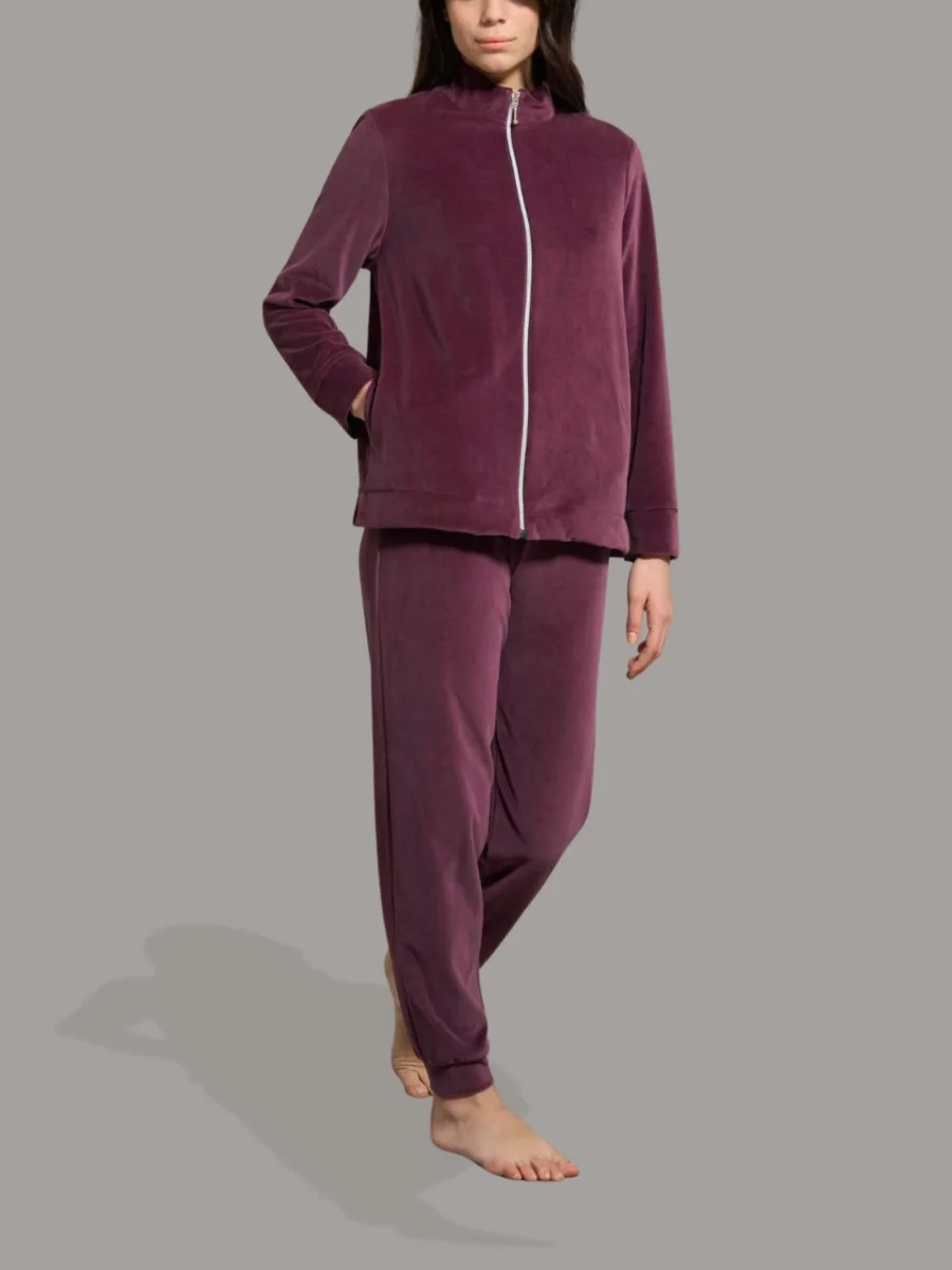 Tuta da donna in ciniglia di misto cotone.