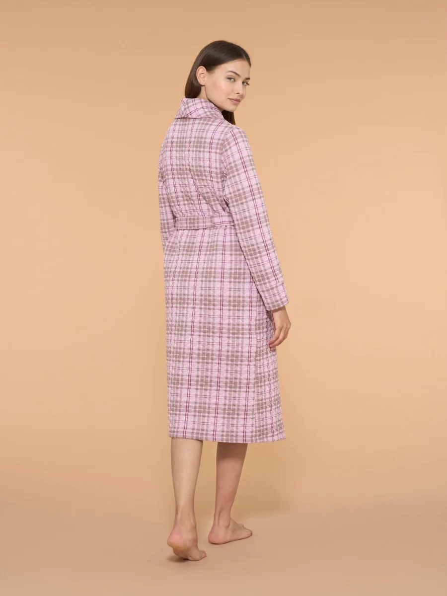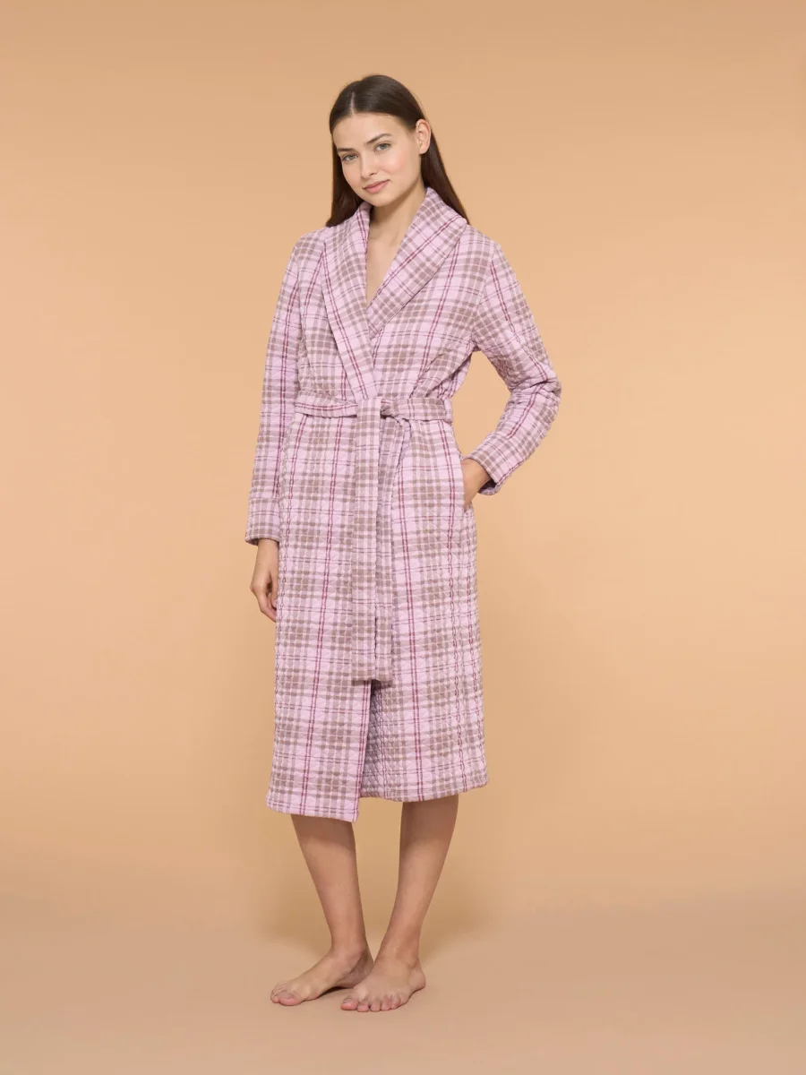 Esplora l’eleganza senza tempo della nostra vestaglia invernale aperta da donna con stile tartan, con una lunghezza midi che unisce comfort e stile.