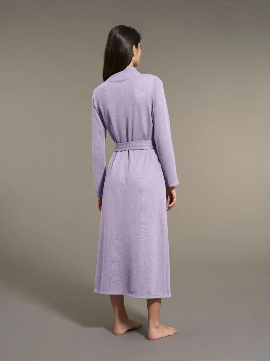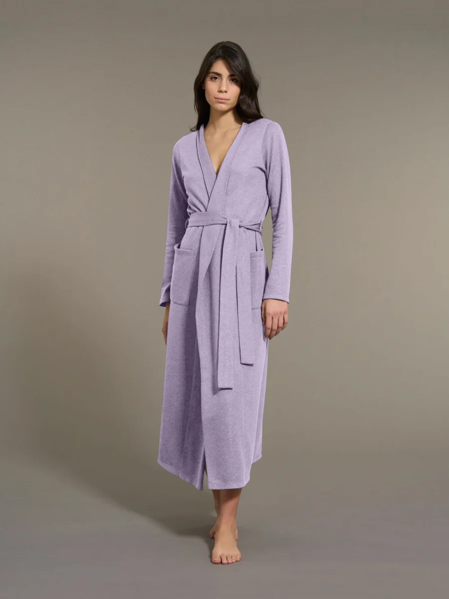 Scopri il confort della nostra vestaglia lunga da donna in Cotton Eco Pile e Lurex , è un capo che ti terrà al caldo e avvolto in morbidezza durante le fredde notti invernali.