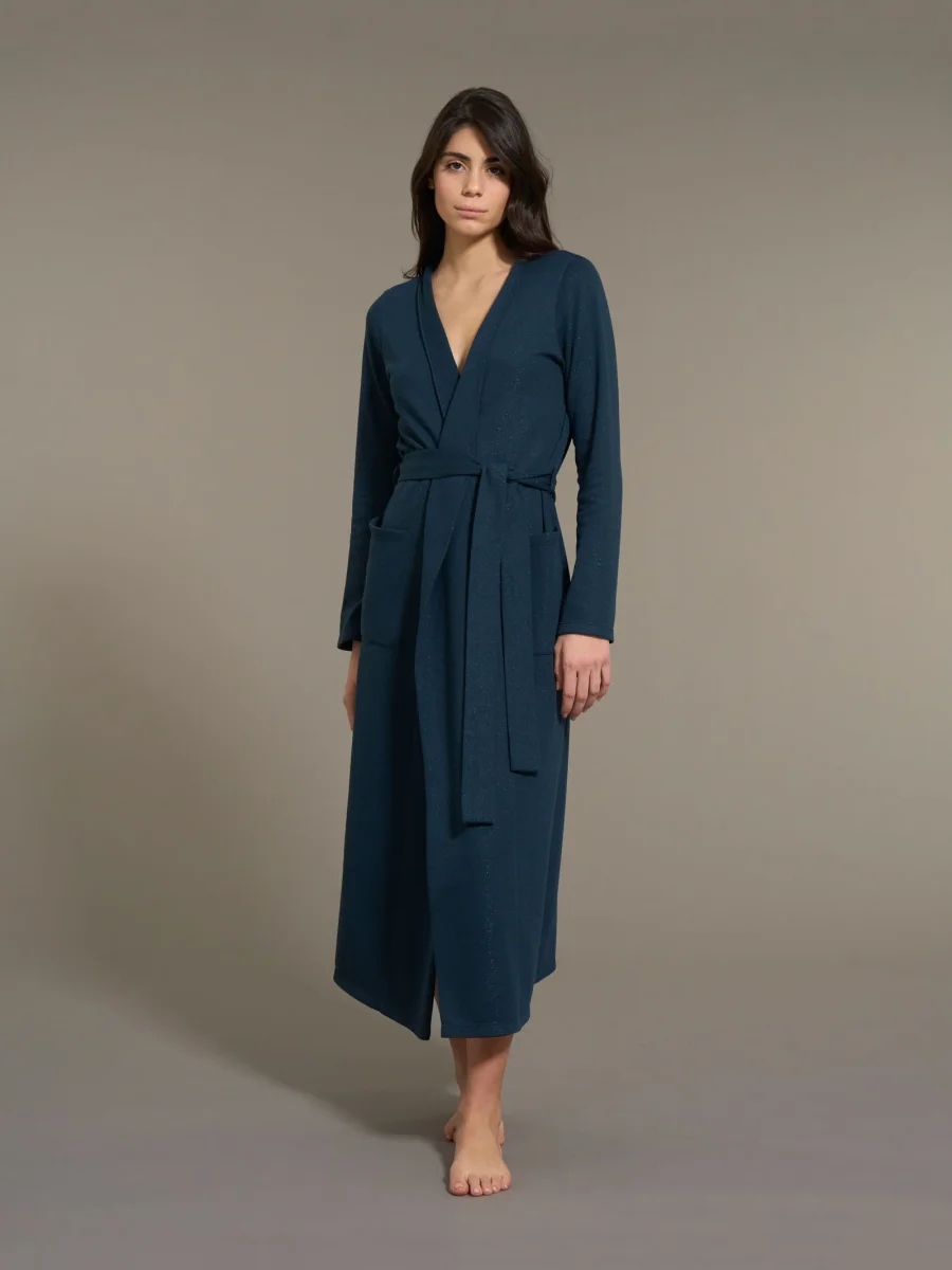 Scopri il confort della nostra vestaglia lunga da donna in Cotton Eco Pile e Lurex , è un capo che ti terrà al caldo e avvolto in morbidezza durante le fredde notti invernali.