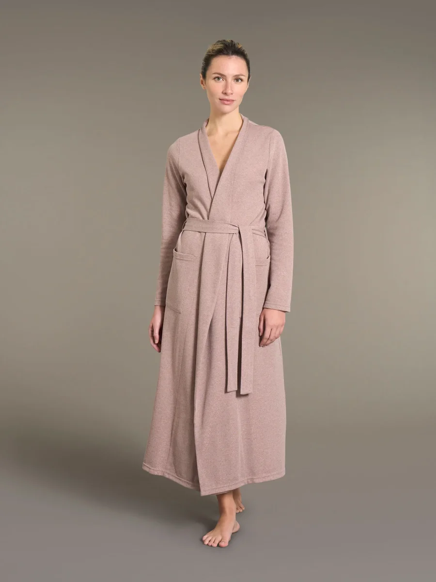 Vestaglia lunga alla caviglia in Cotton Eco Pile e Lurex – Terra