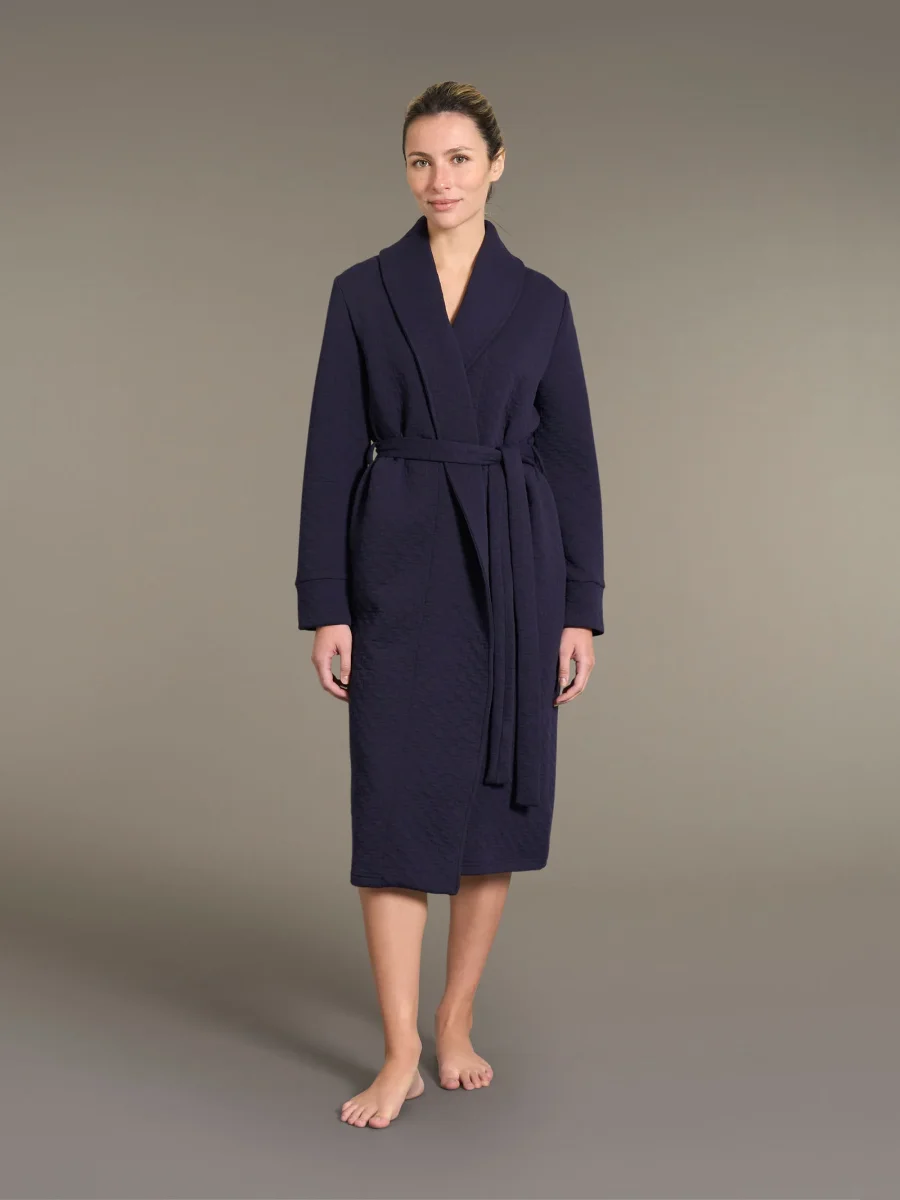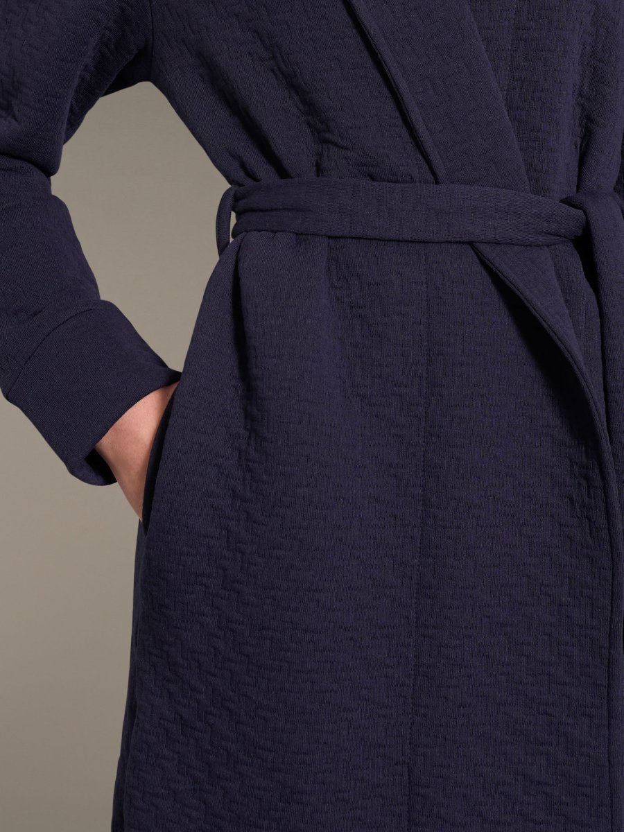 Realizzata in un morbido tessuto trapuntino, ispirato allo stile delle trapunte tradizionali, questa vestaglia offre un’esperienza di lusso e calore durante le fredde giornate invernali.